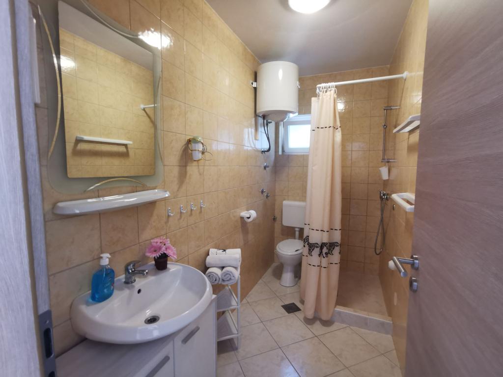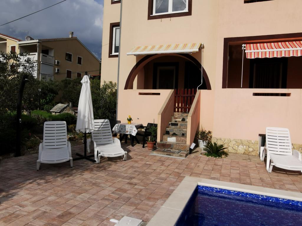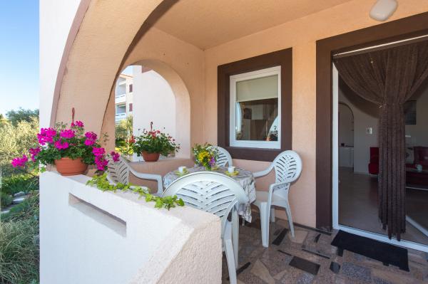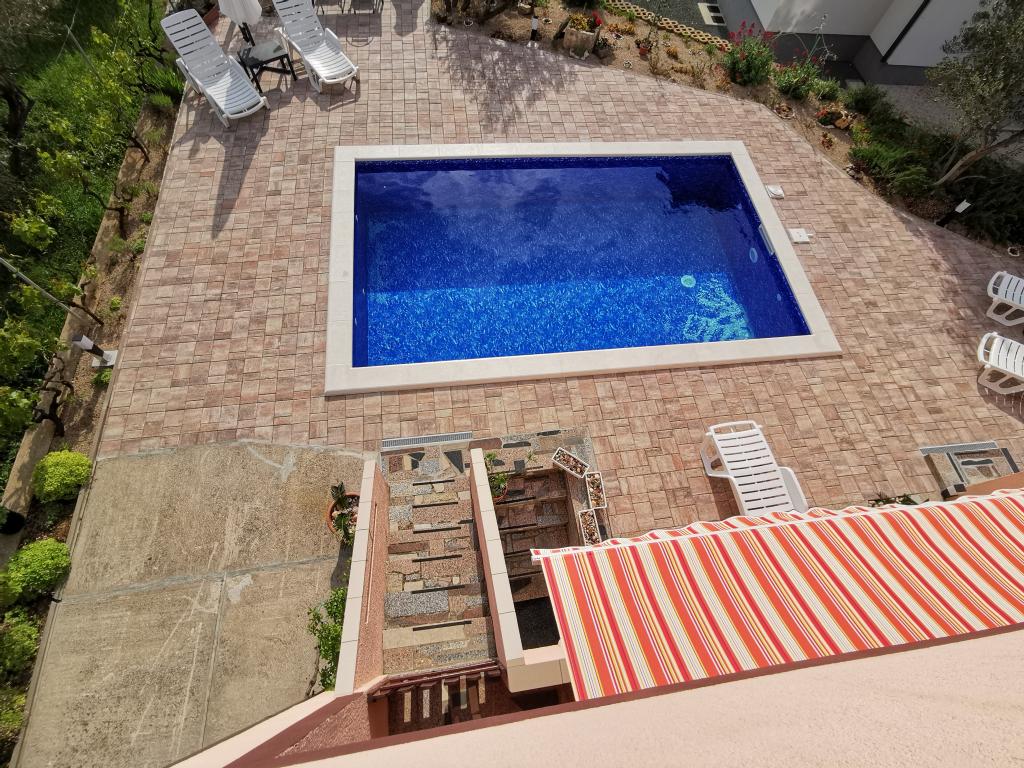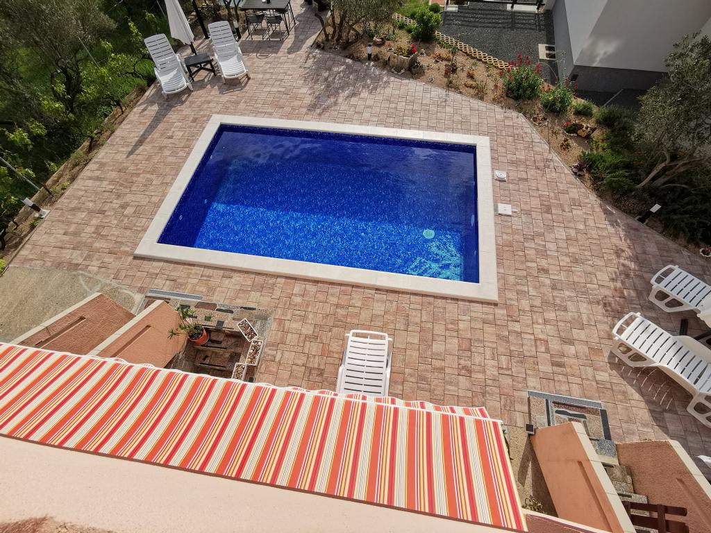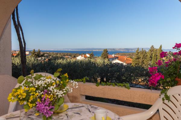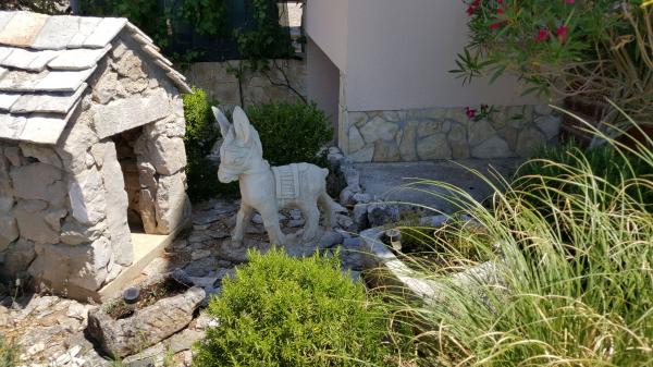 Apartmány jsou v klidné části města s krásným výhledem na moře, parkování v objektu. Plně vybavený apartmán s terasou, velkou botanickou zahradou, kde je gril s posezením, slunečníky a lehátky pro relaxaci u bazénu. Apartmány registrované pouze pro tři osoby. Během pobytu můžete využívat: společný bazén (sladká voda 6 x 3,5 metru, hloubka 1,5 metru) Hostitel bude v domě.