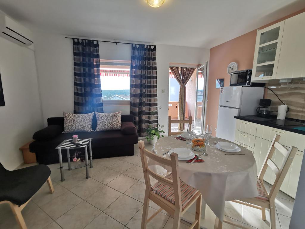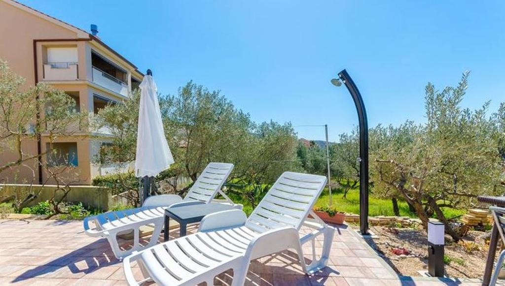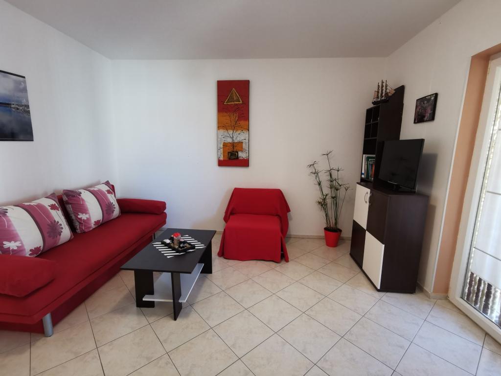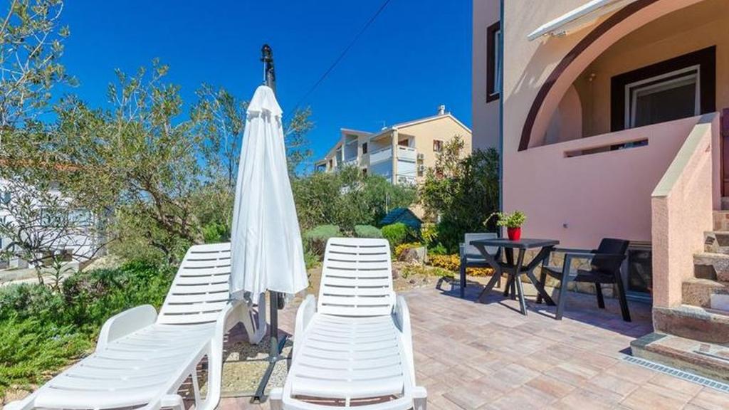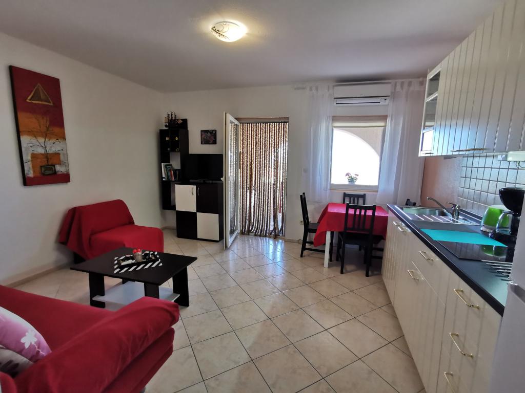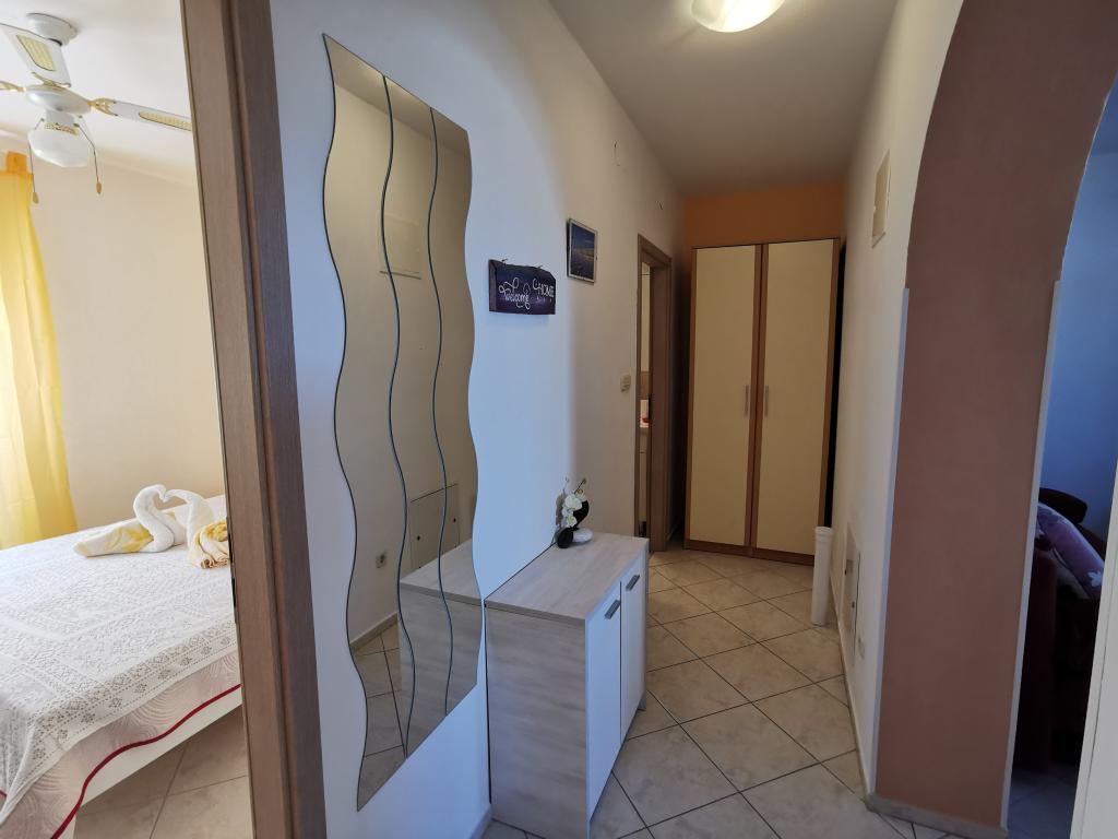 Apartmány jsou v klidné části města s krásným výhledem na moře, parkování v objektu. Plně vybavený apartmán s terasou, velkou botanickou zahradou, kde je gril s posezením, slunečníky a lehátky pro relaxaci u bazénu. Apartmány registrované pouze pro tři osoby. Během pobytu můžete využívat: společný bazén (sladká voda 6 x 3,5 metru, hloubka 1,5 metru) Hostitel bude v domě.