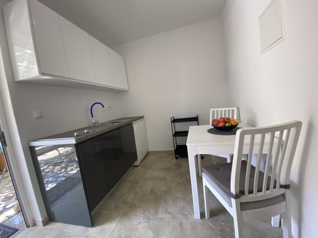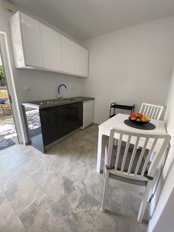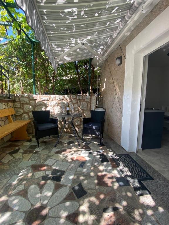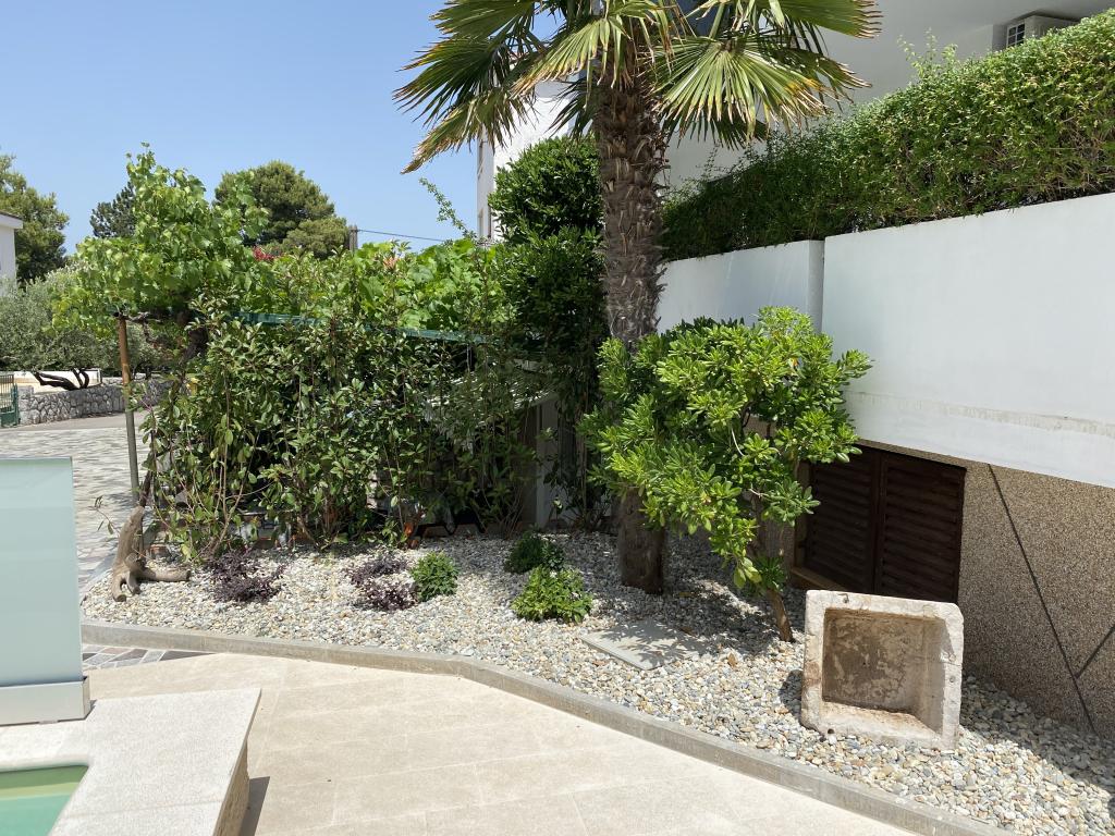 Studio je obklopeno zelení a je to skutečná oáza klidu: středomořské květiny, vinná réva, olivovníky... Potěšily mě fíky a švestky, které jsem si sama natrhala a snědla, a v zahradě vedle domu jsou také rajčata, okurky a cukety a vše se smí sbírat a používat. Zahrada pro deset! Studio je pro dvě osoby tak akorát a má vše, co potřebujete. Všechno je velmi čisté a uklizené, pravděpodobně je všechno nové. Postel je velmi pohodlná a příjemně se v ní spí. Auto se dá zaparkovat na dvoře. Majitelé jsou nesmírně milí, pozvali mě na večeři, kterou připravili na grilu u bazénu. Bazén je pro hosty studia a velkého apartmánu a má vířivku, můžete si zaplavat kdykoli během dne. Punat má skvělé letní akce, takže má dobrý noční život, milovala jsem Beat on the Sea a asi dvacet minut odtud je Diamond club pro ty, kteří hledají trochu intenzivnější zábavu. Pláž je pár minut chůze pod domem, ale majitelé mi ukázali jednu o něco dál, která je krásnější, klidnější a krásnější, jen tak pro potěšení. Celkově jsem s tímto ubytováním nadšený, zelení, klidem, nočním životem a skvělými majiteli! Doporučuji!