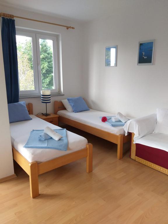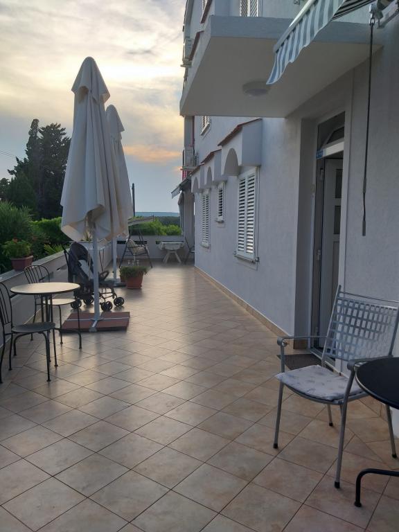 Apartmány Ivo, apartmány rodiny Pravica, kategorie 3***, nově postavené, moderně vybavené, klimatizace, TV/sat. Výhled na moře, vzdálenost od pláže dvě minuty pěšky, zajištěné parkovací místo pro auto ve dvoře ve stínu, obklopené zelení. Apartmány Ivo nabízí ubytování v plně vybavených apartmánech. Velký apartmán má 2+2 lůžka v ložnici a obývacím pokoji. V bytě je dále kuchyň, jídelna a koupelna s WC. Další apartmány nabízejí ubytování pro 2 osoby s přistýlkou, kuchyňkou a koupelnou s WC. Velké apartmány mají terasu s výhledem na moře.