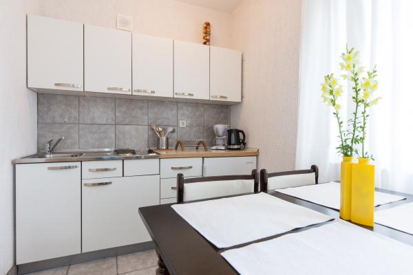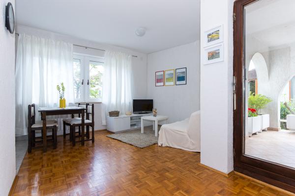 Apartmány se nacházejí v centru města Krk, 5 minut chůze od pláže a okolních obchodů. Kromě standardního vybavení, apartmány jsou navíc vybaveny: - Satelitní televize - Volný WiFi - Klimatizace - Konvice, kávovar, toustovač ...) Každý apartmán má terasu a parkoviště. Žijeme ve stejném domě a jsou k dispozici pro další šetření a pomoc. Vítejte!