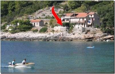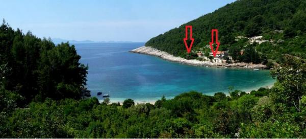 Pokud hledáte pro byty, kde si můžete odpočinout od každodenního stresu, daleko od hluku a shonu, tyto apartmány jsou tou správnou volbou pro vás. Tyto apartmány jsou umístěny v Pupnatska přístavu, nejkrásnější zátoce na ostrově Korčula, který se nachází od města Korčuly 17 km. Byt 1. (Označeno šipkou blíže k pláži) se skládá ze dvou ložnic (manželská postel), vybavená kuchyně, obývací pokoj, koupelna (WC a sprchový kout) a krb. Z terasy, pokryté vinic, s výhledem na pláž a záliv. Byt má venkovní gril. K bytu náleží lednicí a plynovým sporákem. V bytě je solární energie. Vzdálenost jen 7 m od moře. Apartmán 2 (šipka vlevo na obrázku) se skládá ze dvou ložnic (manželská postel), vybavená kuchyně s pohovkou, a sociálním zařízením (WC a sprchový kout). V popředí je velká terasa s výhledem na pláž a Lastovo. Má venkovní gril. Výborná poloha: 7 m od moře, izolované od ostatních provozních prostorů. Ideální pro ty, kteří hledají soukromí. V bytě je solární energie.