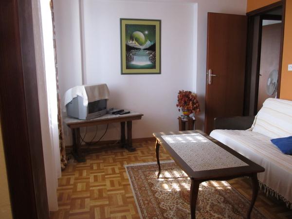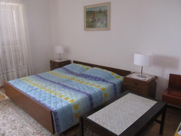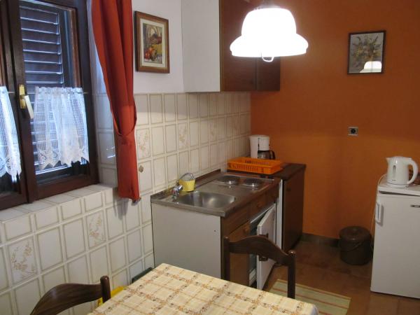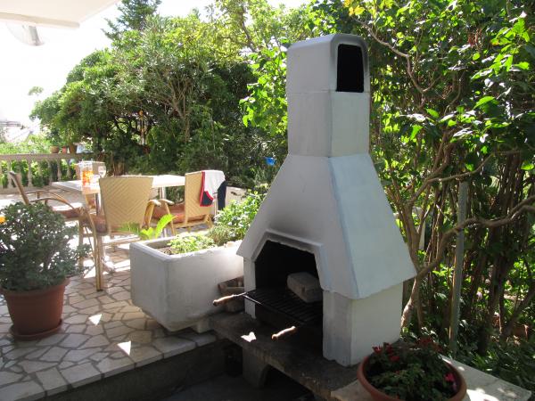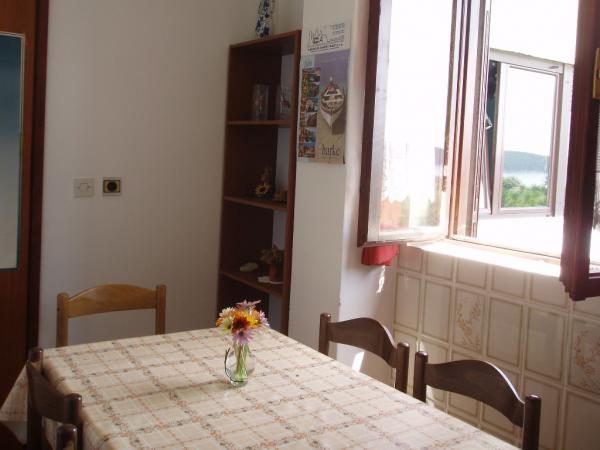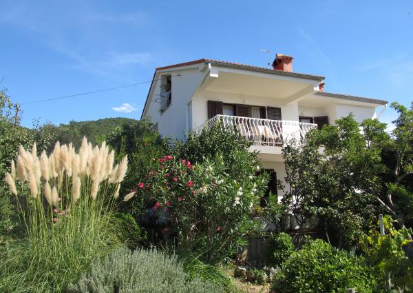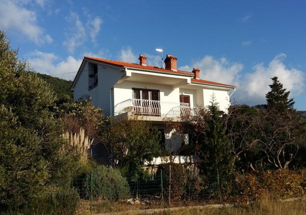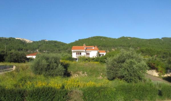 Prostorný a vzdušný byt v prvním patře našeho domu, obklopen olivovníky a výhledem na moře. Byt má dvě ložnice s balkony, dvě koupelny, obývací pokoj, kuchyň a jídelna s kuchyní. Je ideální pro dvě dvojice nebo rodinu s dvěma nebo třemi dětmi. To se nachází daleko od hlučné a gužvovitih turistických částí ostrova, a opět na nejbližší pláž a restaurace trvá jen 5 až 10 minut chůze.