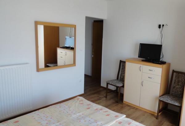 Pobytová taxa není v ceně.Zvláštností naší nabídky je deska a la carte Plná penze a la carte. - Polopenze la carte dělá vkládá služba snídaně a večeře. K večeři, hosté mohou vybrat z menu o 3 chodech. To znamená, že není denní menu ready-made, ale služba je la carte z menu. - Plná penze la carte, aby snídaně, obědy a večeře. Obědy a večeře mohou být rovněž vybrány z menu, 3 samozřejmě la carte. - Snídaně: horký nápoj volby (káva, čaj, mléko, kakao), vejce (připravené na vyžádání), máslo, džem, smetanový sýr, sýr Zdenka, med, sýry, 2 druhy salámu, ovoce, zeleniny, pomerančový džus a pekařství zboží - Obědy a večeře; 3 chody při výběru (předkrm hlavní jídlo dezert) Nápoje k obědu a večeři nejsou zahrnuty v ceně.
