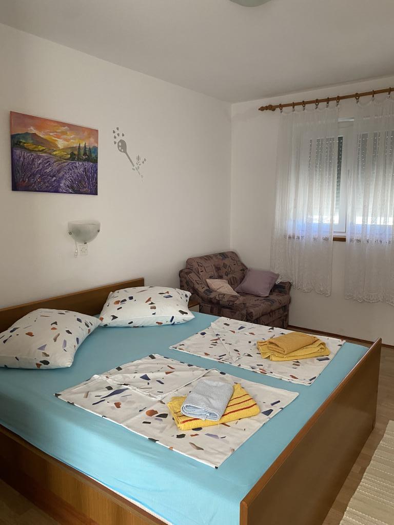 Apartmán pro 4 osoby, cca 300 m od moře a pláže. Kousek na kopci, s výhledem na moře, klid a pohoda, terasa, parkování, gril, wifi, TV, pračka, klimatizace, kotviště pro loď do 7 m.
