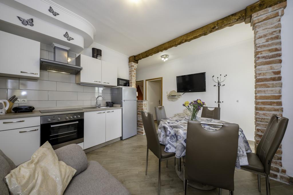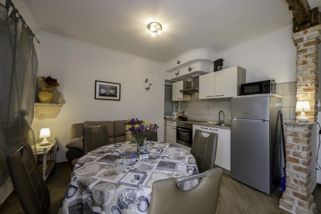 Moderní apartmány v blízkosti centra města Rab. 5 minut chůze od nového města, 10 minut chůze od historického centra města a 15 minut pěšky nebo jet na pláž. Apartmány jsou vybaveny vším potřebným pro váš pohodlný a bezstarostnou dovolenou. Ty se nacházejí v rodinném domě v klidné čtvrti.