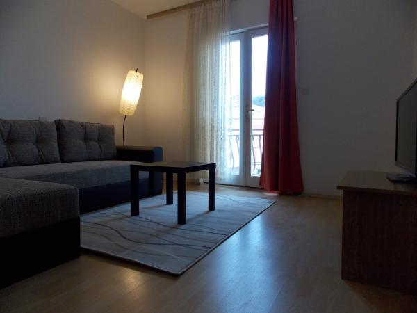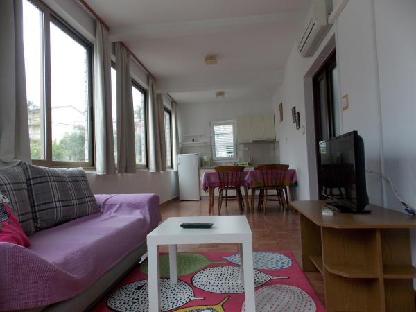 Popisy budovy, stejně jako obrázky A2 + 2 plně odpovídá realitě. To má malý balkon, kde si můžete utěrky atd. Umístění nemovitosti je ideální pro lidi, kteří přijdou autobusem, protože je to asi 5 minut chůze od autobusového nádraží na ostrově, 5 minut chůze od pláže a 10-15 minut chůze od starého města Rab. Facility přivítal nás čisté a uklizené. Hostitelé byli tak užitečné, ale nenápadný to, co považuji za plus. V blízkosti areálu a asi 5 minut chůze od supermarketu Konzum, kde můžete nakupovat. Vzhledem k tomu se nachází zařízení 10 minut chůze od starého města velké množství restaurací a pečiva je v ruce. Rozhodně doporučujeme zařízení pro turisty, kteří hledají klid a odpočinek.