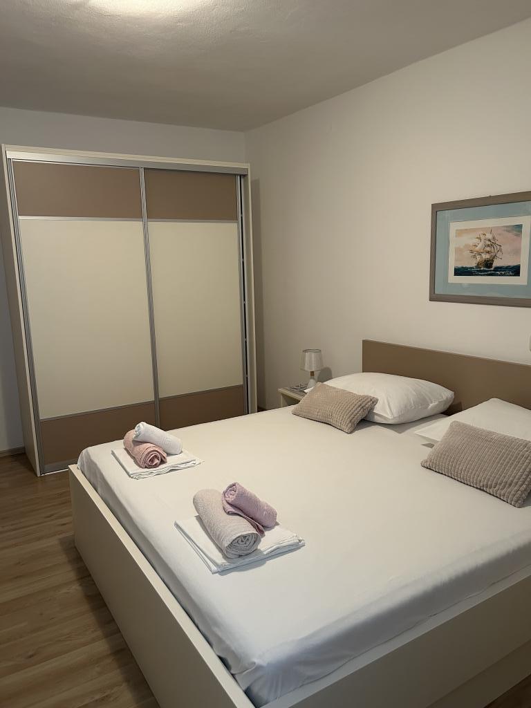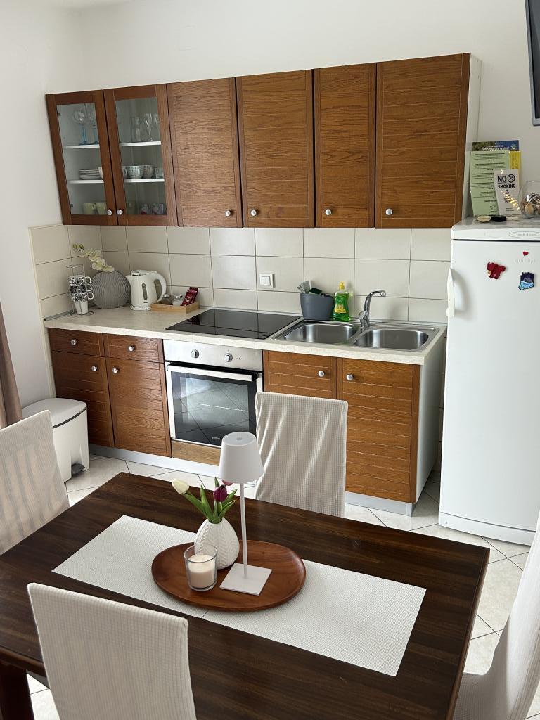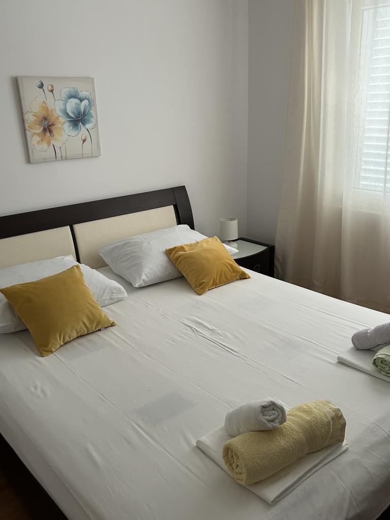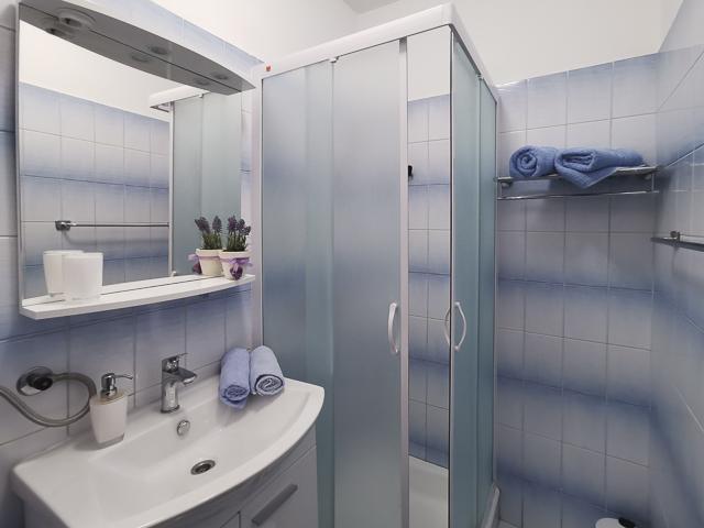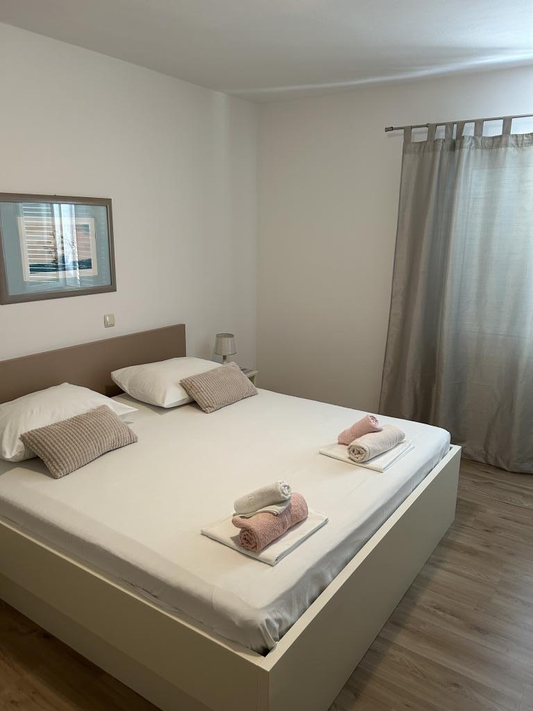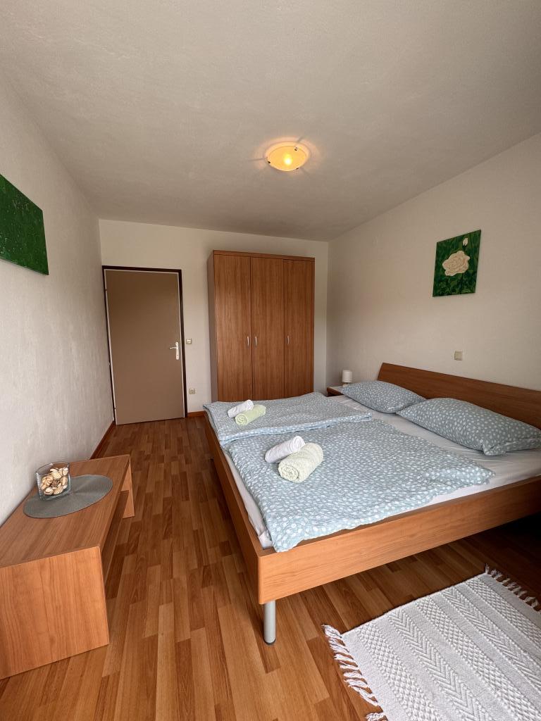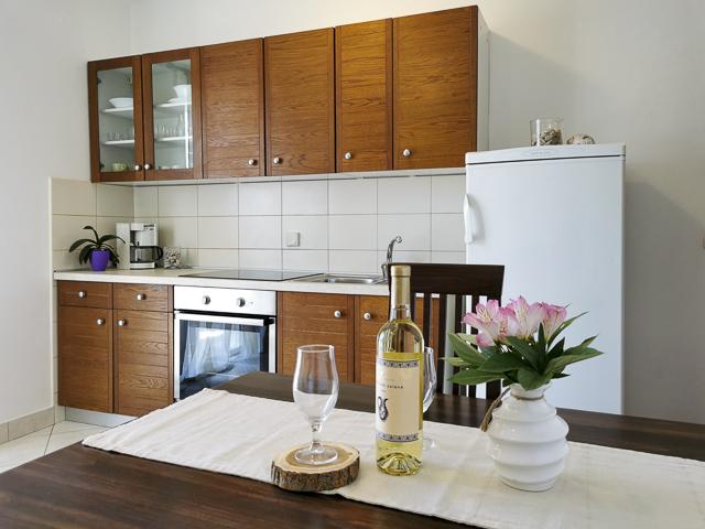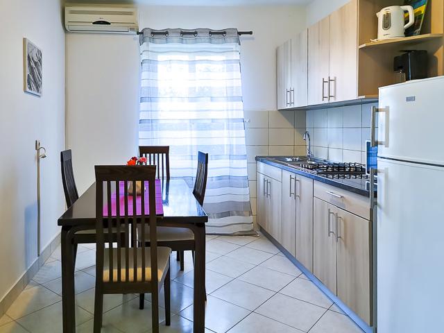 Moderně vybavené apartmány v klidném prostředí. Apartmány se nacházejí v přízemí a v prvním patře. Obsahují obývací pokoj, pokoje s manželskou postelí, kuchyň s veškerým potřebným příslušenstvím, koupelnu a balkon a bezplatné Wi-Fi. V rámci objektu je bezplatné parkoviště a možnost využití grilu. Obchod s potravinami, kavárna a kadeřnictví se nachází 300 metrů od budovy a další zařízení jako restaurace, ambulance, lékárna atd. jsou 5 minut jízdy autem. Nejbližší oblázková pláž je vzdálená 700 metrů, a pokud se přesto rozhodnete prozkoumat trochu více, poloostrov Frkanj, který je plný zátok a pláží, je vzdálený 5 minut jízdy. Staré město Rab je 20 minut snadné chůze podél moře nebo 5 minut autem.