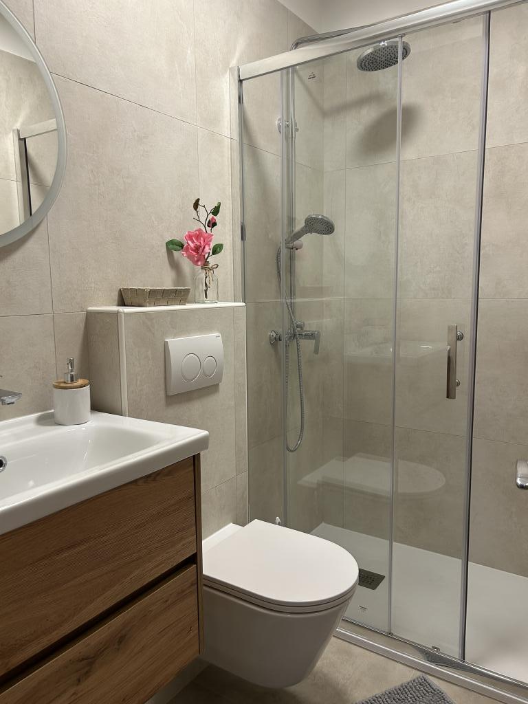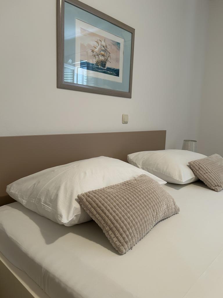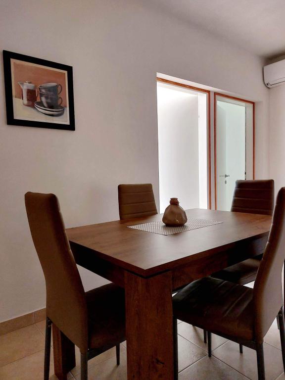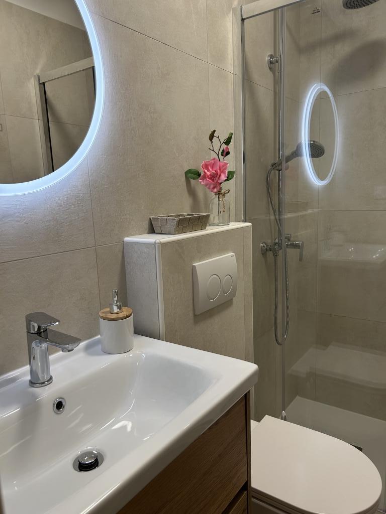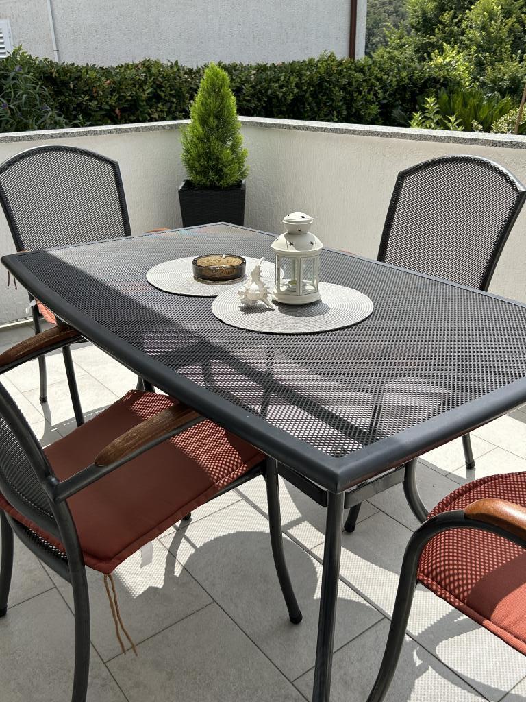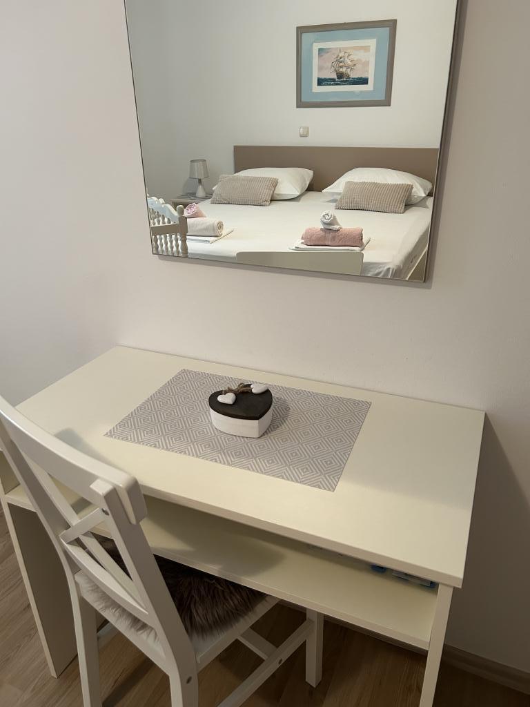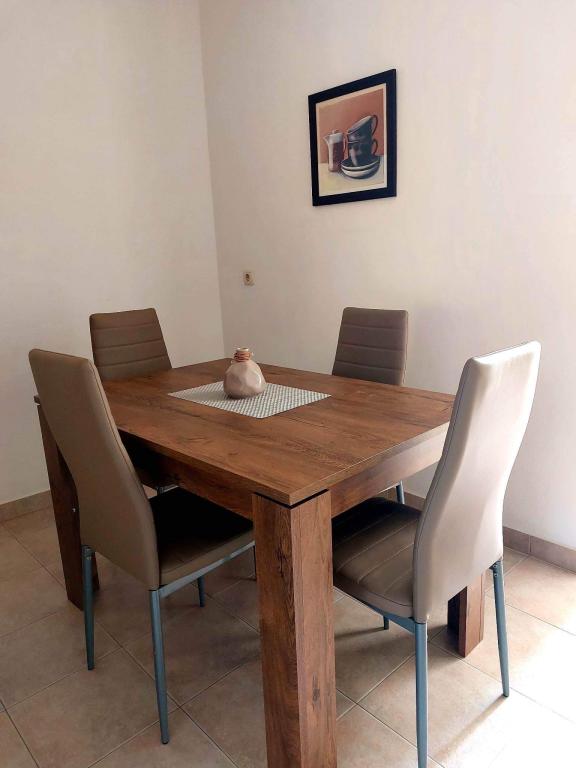 Moderně vybavené apartmány v klidném prostředí. Apartmány se nacházejí v přízemí a v prvním patře. Obsahují obývací pokoj, pokoje s manželskou postelí, kuchyň s veškerým potřebným příslušenstvím, koupelnu a balkon a bezplatné Wi-Fi. V rámci objektu je bezplatné parkoviště a možnost využití grilu. Obchod s potravinami, kavárna a kadeřnictví se nachází 300 metrů od budovy a další zařízení jako restaurace, ambulance, lékárna atd. jsou 5 minut jízdy autem. Nejbližší oblázková pláž je vzdálená 700 metrů, a pokud se přesto rozhodnete prozkoumat trochu více, poloostrov Frkanj, který je plný zátok a pláží, je vzdálený 5 minut jízdy. Staré město Rab je 20 minut snadné chůze podél moře nebo 5 minut autem.