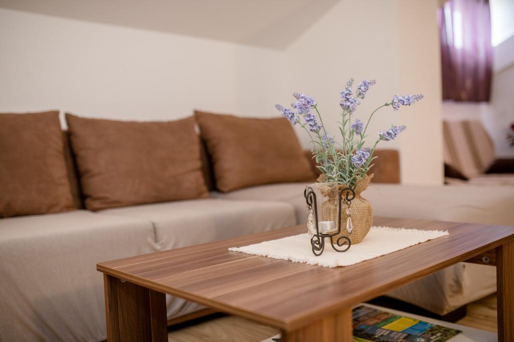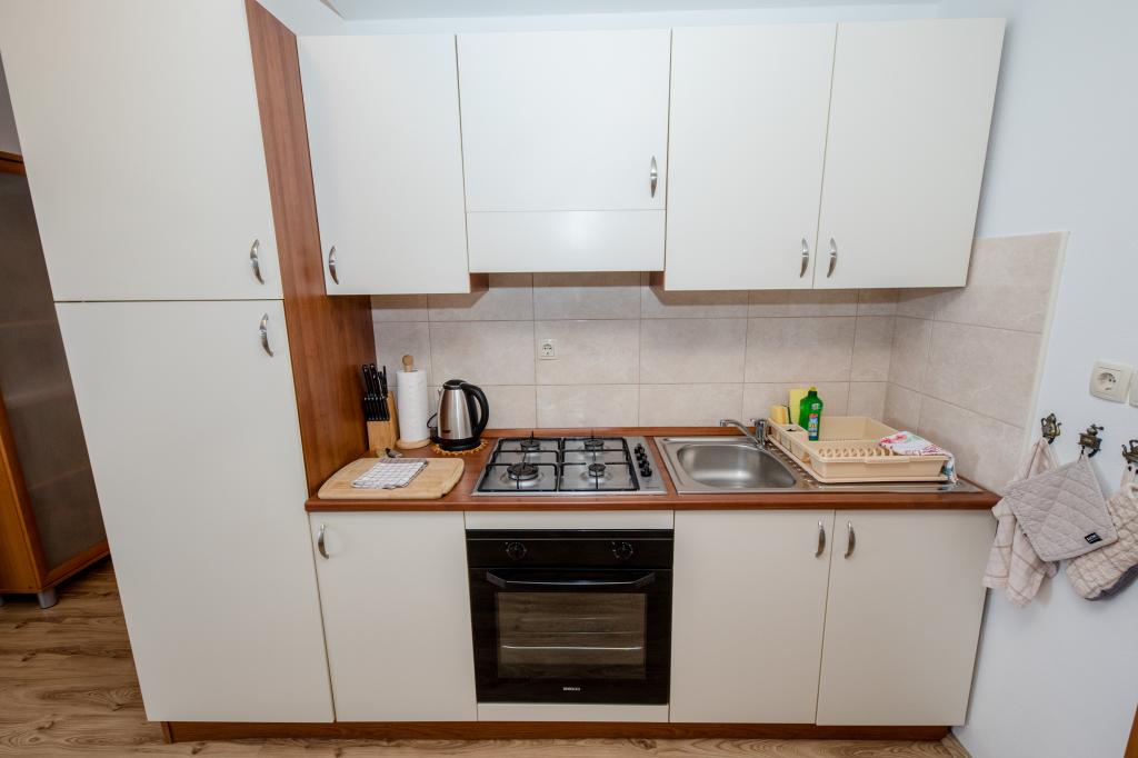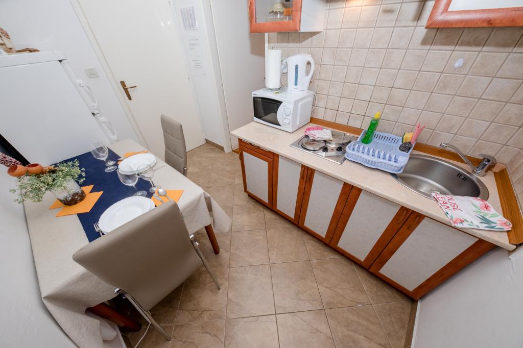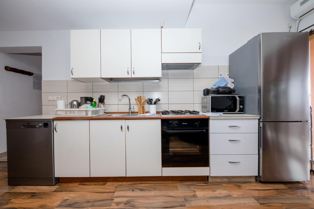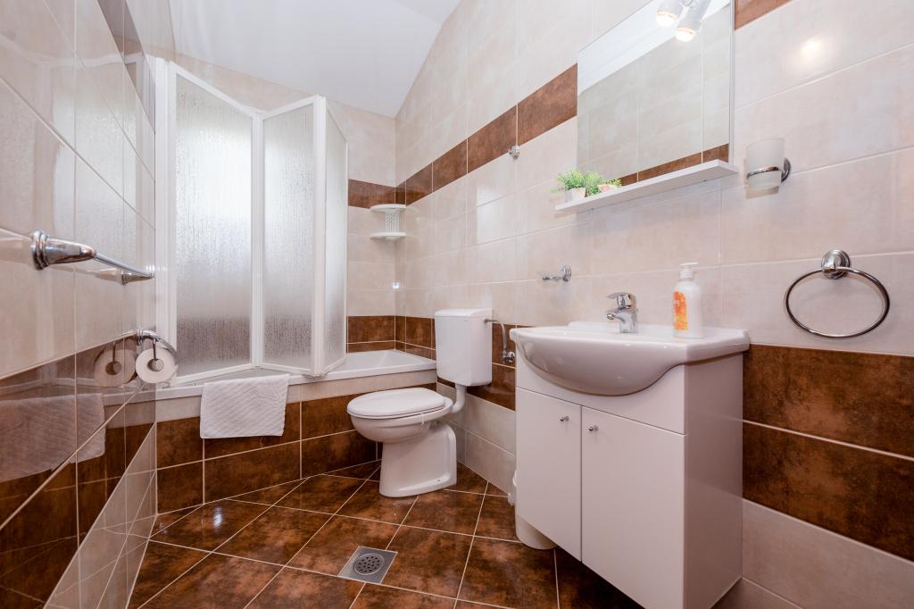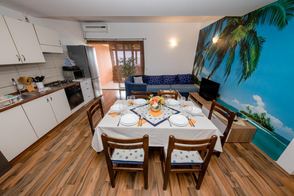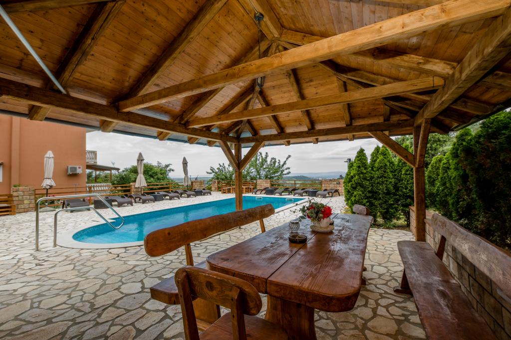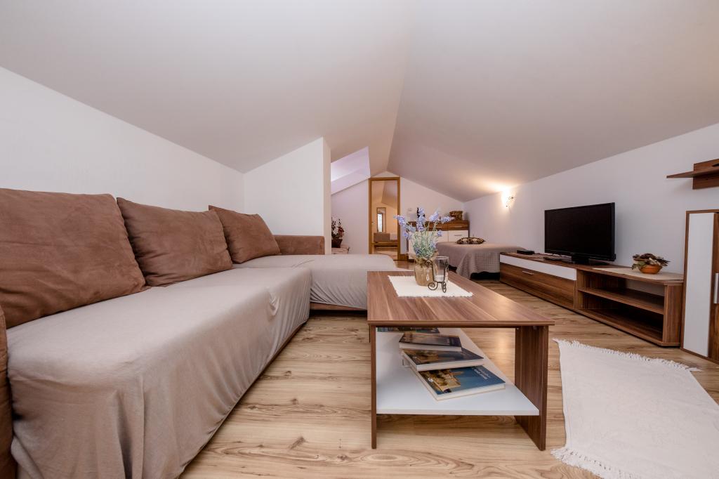 Moderně vybavené apartmány v nadmořské výšce 350 metrů v klidné vesnici v Mundanije na ostrově Rab zvaném Šćerbi. Objekt je vzdálen přibližně 2-3 km od moře, centra a všech ostatních důležitých míst, což je přibližně 10 minut jízdy autem. Poloha budovy nabízí krásný výhled ze všech teras a balkonů na celý ostrov a větší část Kvarnerského zálivu. Klid a nulový provoz našeho města nabízí dokonalou a pohodovou dovolenou v úkrytu přírody a nádherného letního slunečného počasí. U domu je velké parkoviště a za domem je krásně udělaný bazén a vedle něj plocha na opalování.