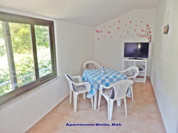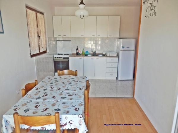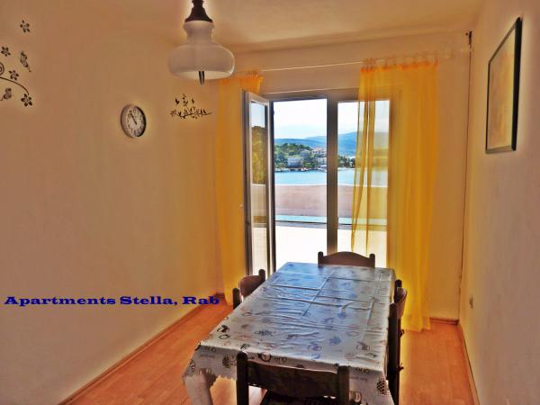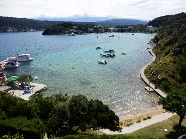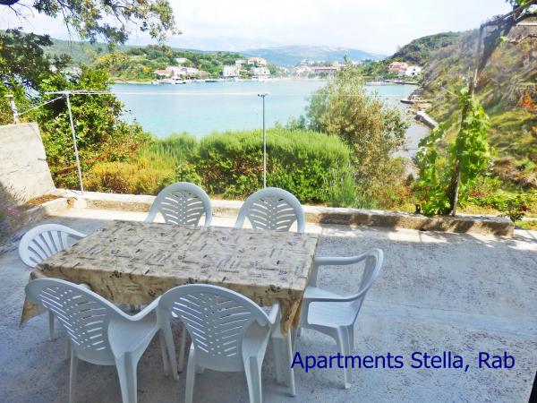 Apartmány se nacházejí přímo u moře, v malé a klidné zátoce Zala, ve městě Supetarska Draga na ostrově Rab. Malá písčitá pláž je vzdálena 10 metrů od domu, a ideální pro děti. Byt 1 v přízemí má dvě dvoulůžkové ložnice, dvě koupelny a kuchyň, TV / SAT. To se může ubytovat až 4 osoby. Na velké terase stůl a židle, a hostům je k dispozici i venkovní sprcha. Byt 2 se nachází ve druhém patře, spí 4 a má 2 ložnice, koupelna, kuchyň a jídelna, klimatizace, TV / SAT, Internet, veranda a velký balkon. Parkování je zajištěno pro hosty, stejně jako kotviště lodi. Taxa je v ceně.