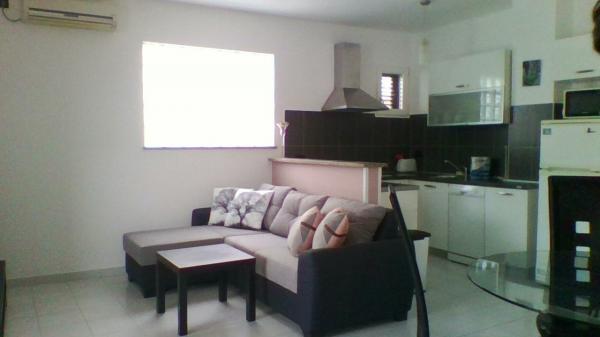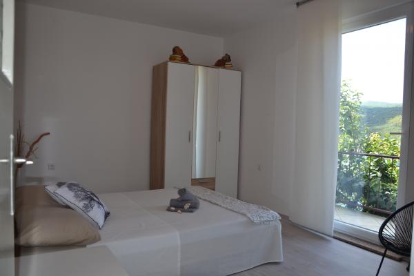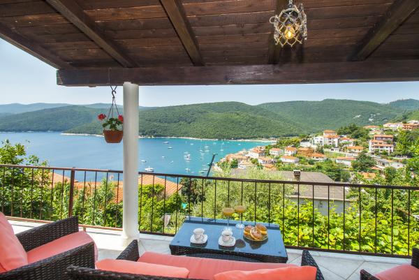 Byt se nachází na kopci s výhledem na záliv. Krásný a prostorný byt se nachází v domě s kompletním oploceném dvoře. Byt se nachází v 5 minut chůze od pláže a centra města Rabac, obchod s potravinami se nachází ve vzdálenosti 50 m.