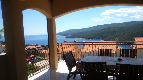 Hostitelský pár byl velmi milý a ochotný, po příjezdu nás přivítal čerstvými koláči a studenými nápoji. Ubytování je perfektní, obrovská terasa nabízí krásný výhled na moře. Kuchyň je dobře vybavená, oddělené pokoje poskytly všem soukromí. Ubytování má velmi dobrý poměr ceny a kvality, jedinou nevýhodou je strmá dlouhá cesta do horského úbočí. Užívali jsme si koupání v bílých skalnatých zátokách s průzračnou modrou vodou. Na blízké pláže se dostanete z poloviny autem a z poloviny pěšky, asi za 20-25 minut. Větší supermarkety jsou v sousedním městě a menší obchody najdete také v Rabacu. Pobřežní pěší zóna nabízí velmi dobré restaurace, zmrzlinárny a malé obchody. Doporučujeme aktivním rodinám a skupinám přátel. Rádi se vrátíme.