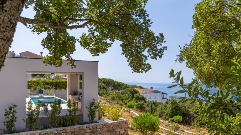 Green Tree a Villa Immortella se nachází v Rabacu a nabízí klimatizované ubytování s balkonem. Ubytování nabízí výhled na hory a patio. K dispozici je sezónní venkovní bazén a hosté mohou využívat bezplatné Wi-Fi, neplacené soukromé parkoviště a dobíjecí stanici pro elektromobily. Prostorná vila má 2 ložnice, TV s plochou obrazovkou se streamovacími službami a plně vybavenou kuchyň s myčkou, troubou, pračkou, toustovačem a lednicí. Hosté si mohou vychutnat výhled na moře z terasy, která má také posezení. K dispozici je také posezení a krb.