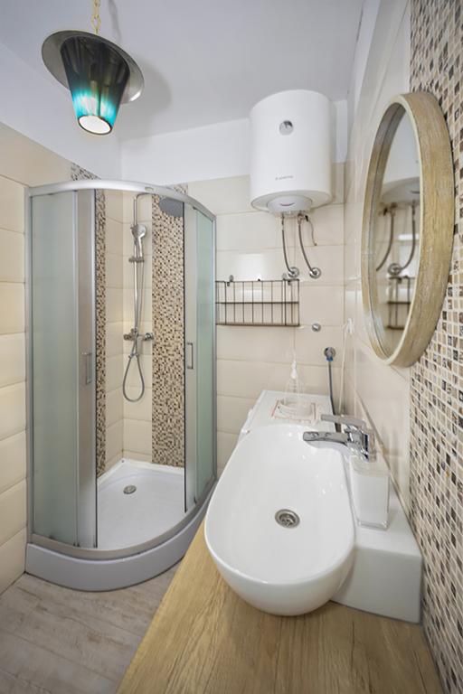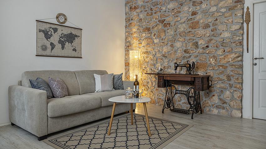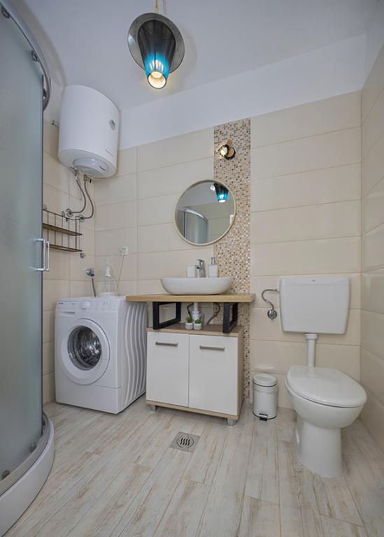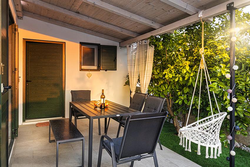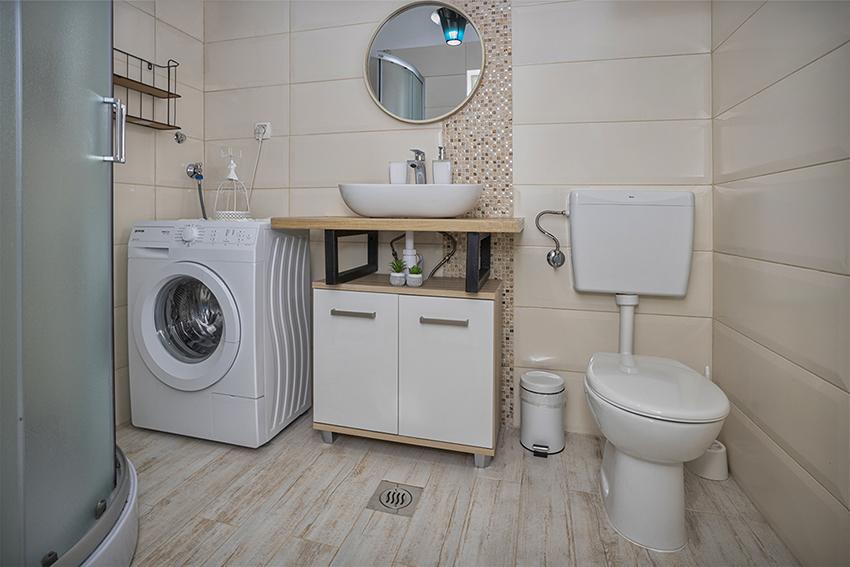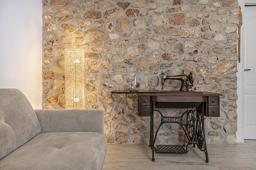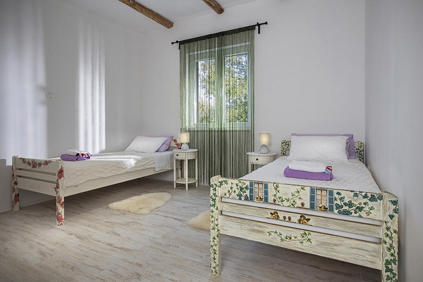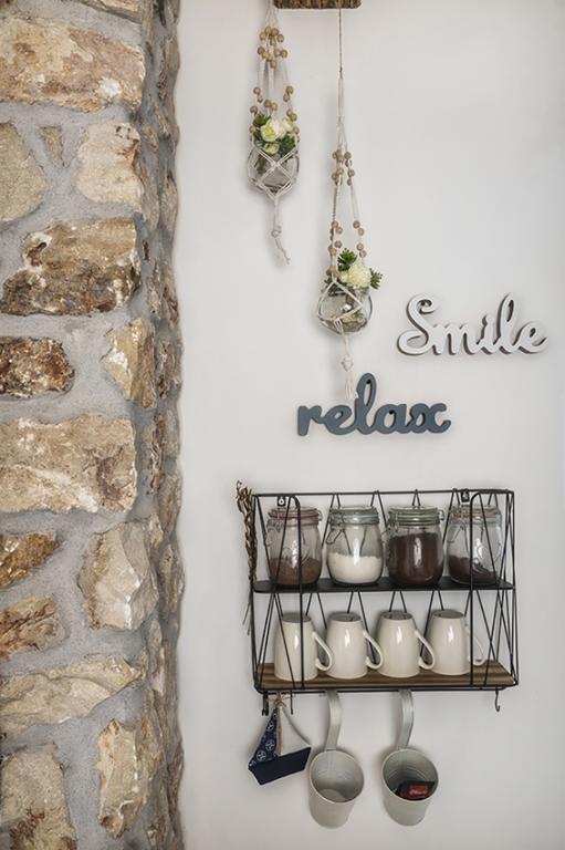 Byt se nachází na samotě ve starší části obce na vrcholu kopce (75 m až 82 m n. m.), takže si užijete klid a pohodu. Od nejbližší pláže je vzdálen 100 m. Dá se k ní dojít pěšky po staré cestě nebo pěšky nebo autem po nové silnici. Kuchyně je moderně vybavená a můžete využít lednici s mrazákem, troubu, myčku, espresso, toustovač, varnou konvici, mikrovlnku. V budově je klimatizace a podlahové vytápění. Koupelna je vybavena pračkou. Byt má dva pokoje. Jeden má manželskou postel a druhý pokoj má dvě samostatné postele, které lze spojit. Můžete si také užívat venku na prostorné terase.