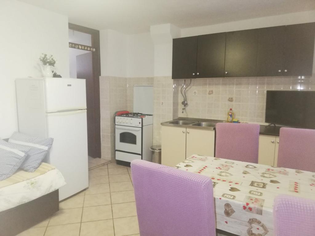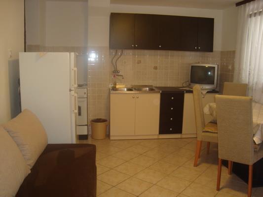 Apartmány jsou na klidném místě, plně vybavené. V kuchyni je veškeré potřebné nádobí pro uskladnění a podávání jídla a nápojů. Mají také lednici s mrazákem, plynový / elektrický sporák s troubou. Apartmány jsou klimatizované. WiFi V koupelně je sprchový kout, WC, umyvadlo se zrcadlem. Vedle apartmánů jsou kryté terasy s širokým výhledem na moře. Zednické grilování. Vedle apartmánů je zajištěno parkování ve vlastním dvoře. Pláž je 70 metrů. Pláž je ideální pro děti. Mezi další zařízení na pláži patří bowlingová dráha a síť na vodní volejbal.