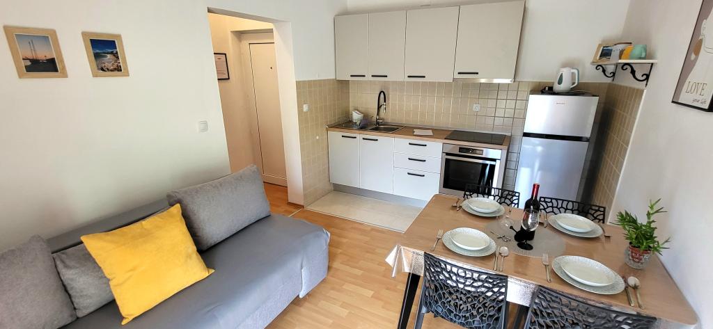 Skvělá lokalita od pláže. Apartmán nové a dobře udržované, čisté a funkční. Vynikající řešení pro naši rodinu - 3 dospělé osoby Majitelé nyní jeví jako užitečné a příjemné, velmi přátelský a vždy ochotný pracovat žádnou potřebu. Pobyt byl velmi příjemný.