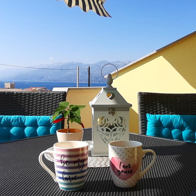 Krásné místo k odpočinku s velkým balkonem s výhledem na moře a hory. Čistý, tichý, klidný. Majitelé jsou ochotní, milí a pohostinní. Doporučujeme