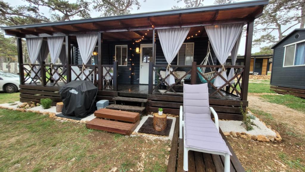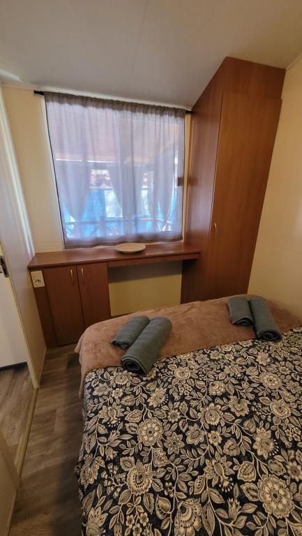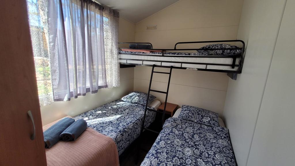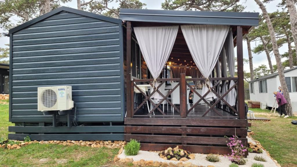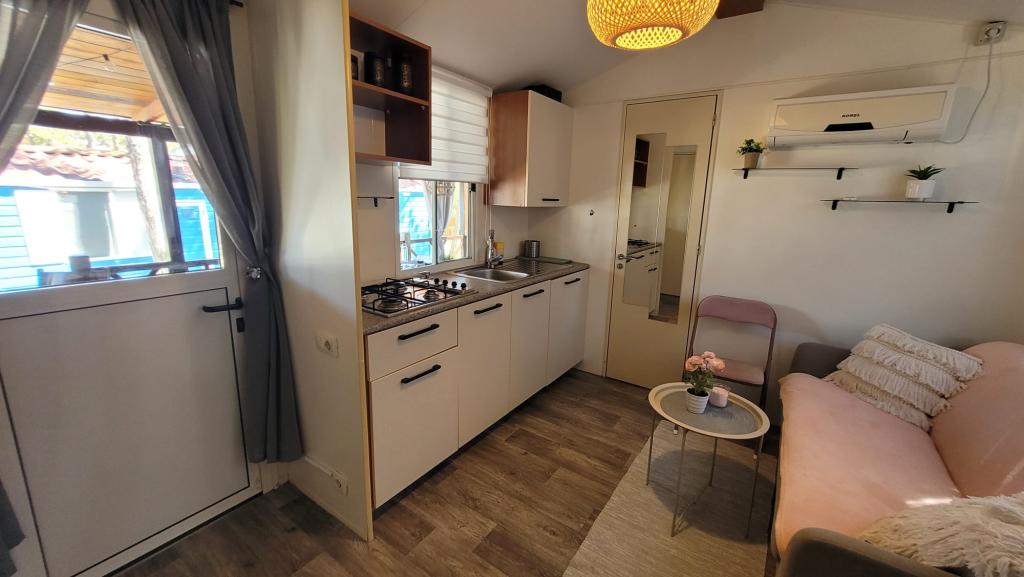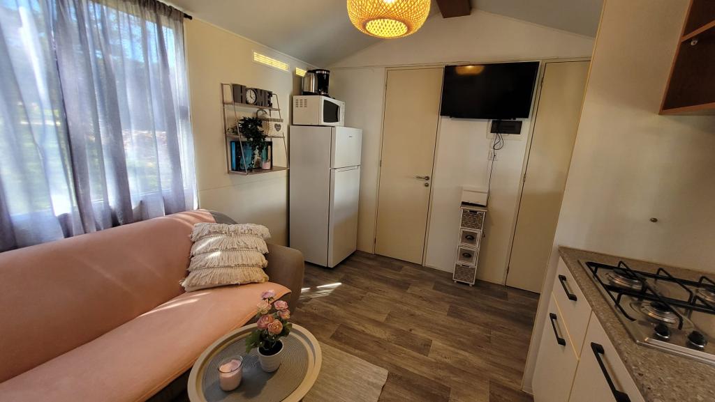 Dvoupokojový mobilní dům NALANI se nachází v kempu Planik (24 m2) a má 5 lůžek a cestovní postýlku pro miminka. Jeden pokoj má manželskou postel a druhý má dvě samostatné postele a jednu patrovou postel. V koupelně je fén, ručníky a mýdlo na ruce. V kuchyni je sporák, velká lednice, varná konvice, kávovar a mikrovlnná trouba. V obývacím pokoji si můžete vychutnat TV s plochou obrazovkou a ochladit se klimatizací. U vchodu je velká krytá terasa (20 m2) s jídelním stolem, grilem a odpočinkovou zónou. Parkovací místo pro 1 auto je zdarma a je k dispozici za mobilním domem. Domácí mazlíčci jsou povoleni za příplatek!