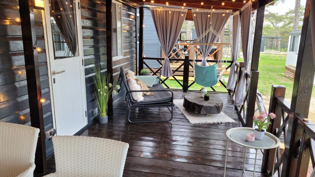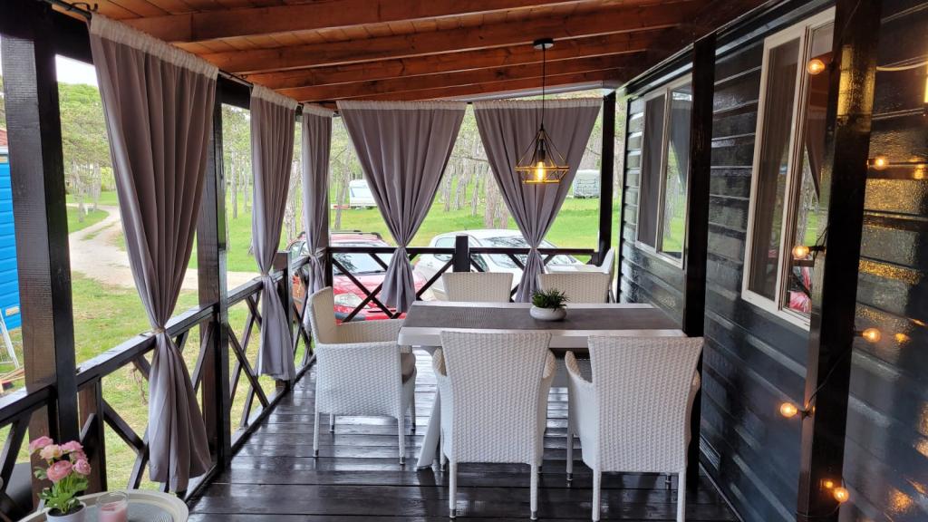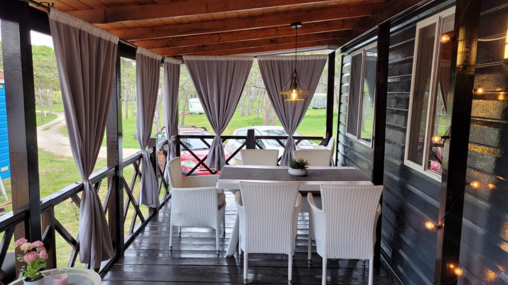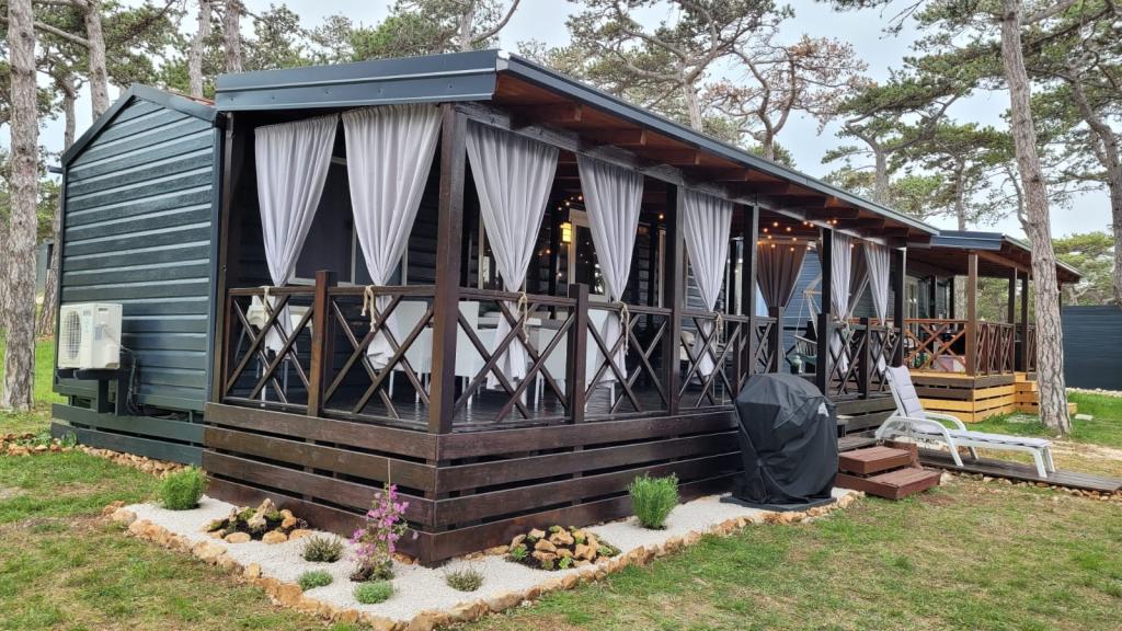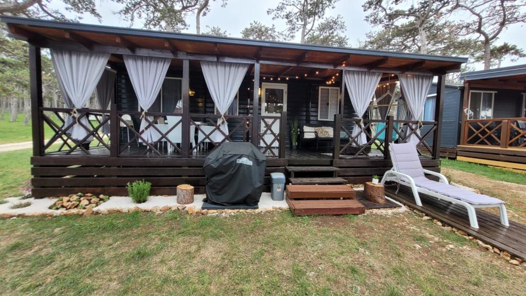 Dvoupokojový mobilní dům NALANI se nachází v kempu Planik (24 m2) a má 5 lůžek a cestovní postýlku pro miminka. Jeden pokoj má manželskou postel a druhý má dvě samostatné postele a jednu patrovou postel. V koupelně je fén, ručníky a mýdlo na ruce. V kuchyni je sporák, velká lednice, varná konvice, kávovar a mikrovlnná trouba. V obývacím pokoji si můžete vychutnat TV s plochou obrazovkou a ochladit se klimatizací. U vchodu je velká krytá terasa (20 m2) s jídelním stolem, grilem a odpočinkovou zónou. Parkovací místo pro 1 auto je zdarma a je k dispozici za mobilním domem. Domácí mazlíčci jsou povoleni za příplatek!