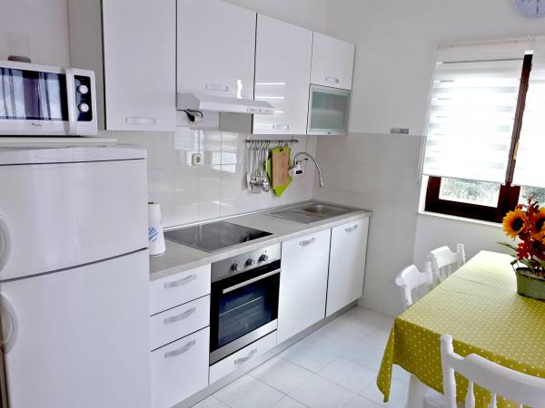 Byt skvělý, čistý, pěkně zařízený, vybavený doslova vším, co byste mohli potřebovat. Pohled z balkonu je nádherný. Blízko k moři. Velmi milí majitelé. Klidná čtvrť, po 15 minutách chůze se dostanete do centra, kde najdete příjemné restaurace a obchod. Každé ráno přijíždí do bytu auto s chlebem a čerstvými rybami. Rozhodně doporučuji !!!