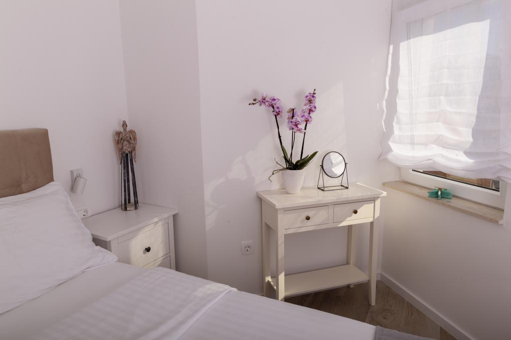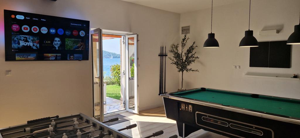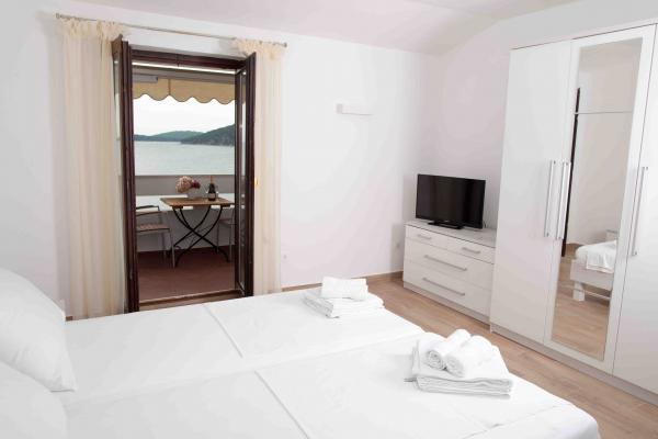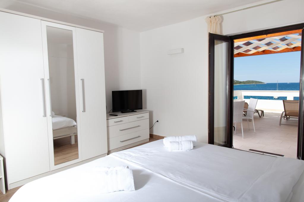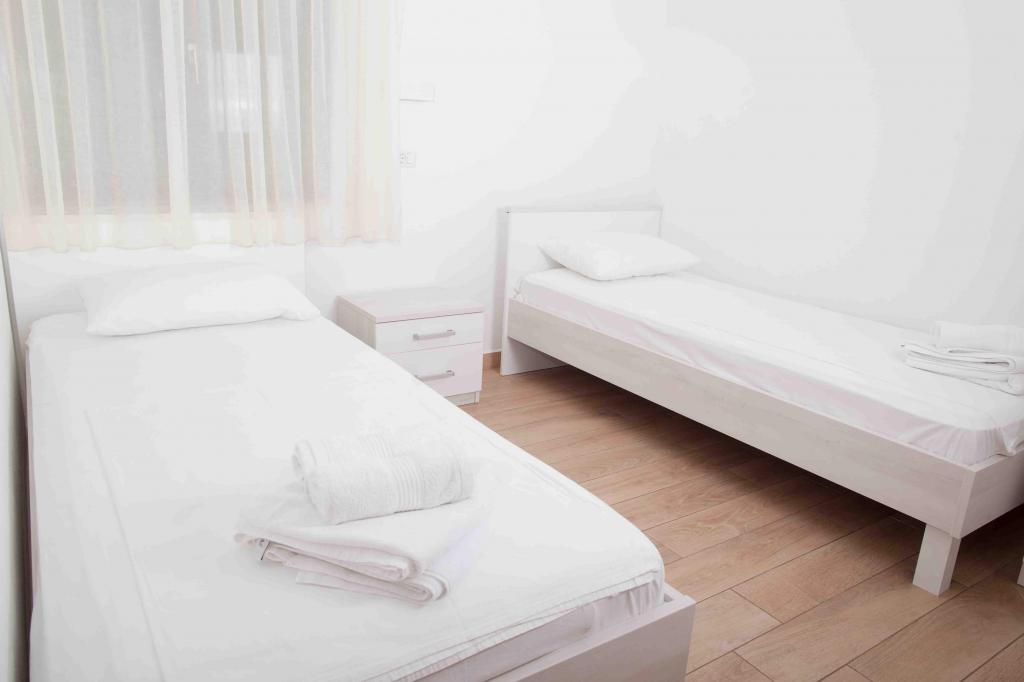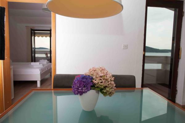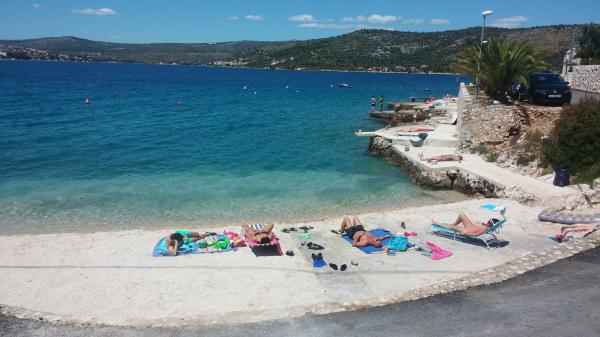 Apartmany se nachazeji v první řadě od moře cize doslova projdete po schodech a jste na plazi. Hned při apartmanu je obchod nad nim restaurace. Apartman se nachazi v klidne oblasti takze ma plazi se vzdy najde místo. Je zde i strk pro děti. Domaci lidé jsou velmi přátelsky. I proto sem chodíme každý rok po dobu 15 let.