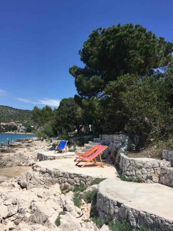 Dům se nachází v Ražnje v zátoce Ljoljinica, 10 km od města Rogoznica, na klidném místě, 10 m od moře, v zeleni. Apartmán 1, 43 m2, vchod v přízemí, 2 ložnice s výhledem na moře, 1. patro, 4 lůžka, obývací pokoj s kuchyní a jídelnou: klimatizace na vyžádání (příplatek 5 eur/den), kávovar, varná konvice, TV, satelitní program, internet. Byt je zvláště dobře zařízený a vybavený, koupelna s WC, parkování (kryté). Apartmán 2 43 m2, 1. patro, 2 ložnice, 4 lůžka, obývací pokoj s kuchyní a jídelnou a výhledem na moře: (klimatizace na vyžádání (příplatek 5 eur/den) kávovar, varná konvice, TV , satelitní program, internet Byt je zvláště dobře zařízen a vybaven, koupelna s WC, parkoviště (kryté) Společné: venkovní sprcha, gril, parkování u domu.