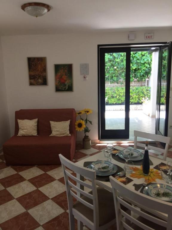 Krásný výhled z bytu, dobře vybavená kuchyň, velmi pěkní hostitelé, pár kroků k moři, klid a mír! Milujeme to!