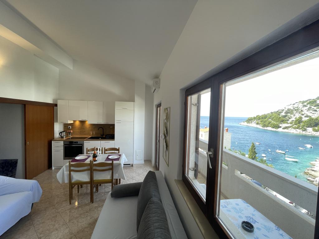 Pobyt v apartmánu byl vždy příjemný, majitelé jsou velmi milí a laskaví. Pokoje jsou čisté a vybavené. Nádherný výhled na moře, klidné okolí. Vstup do moře je komfortní, kvůli dostatečné hloubce nehrozí popíchání ježky. V dojezdové vzdálenosti se nachází kamínkové pláže, které si určitě užijí vaše děti. V centru obce se nachází kulturní zázemí - restaurace a obchod, který má dostatečný sortiment. Nezapomenutelná je plavba parníkem do Rogoznice. Doporučujeme výšlap na blízký kopec kvůli jedinečnému výhledu. Parkování přímo u apartmánu.