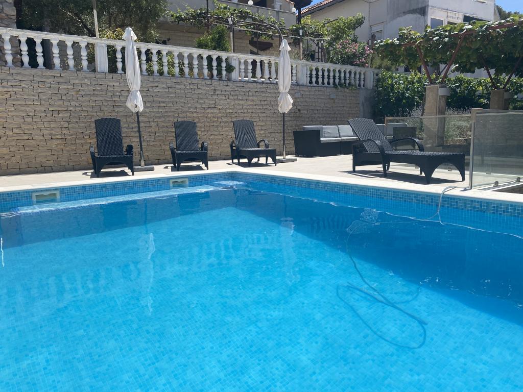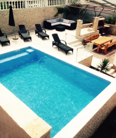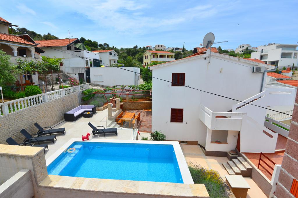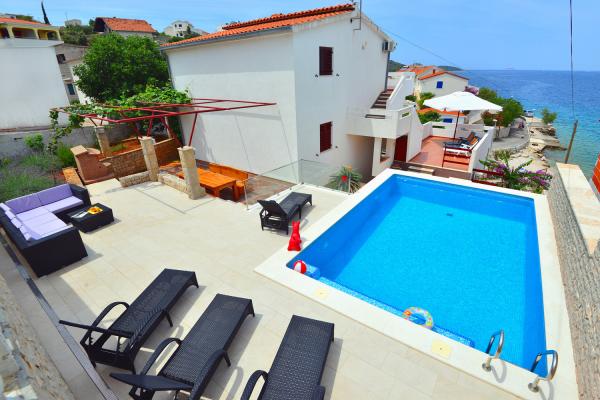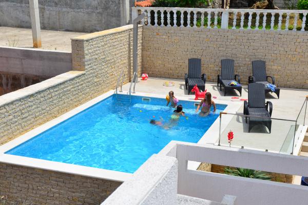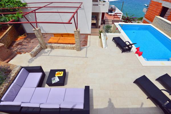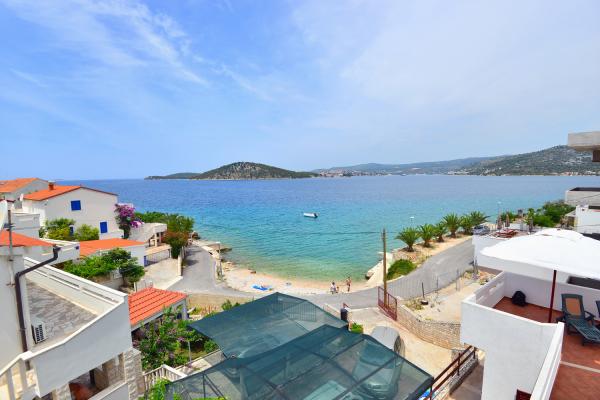 Apartmány jsou velmi pohodlné a jsou umístěny v domě u moře. Těsně nad malou pláží. Pláž je písčitá a je ideální pro rodiny s dětmi. Hosté, kteří chtějí více intimní pobyt u moře se mohou rozhodnout pro stijenovite části pobřeží, které může být dosaženo v krátké procházce. Apartmány se skládají ze dvou prostorných ložnic, koupelna, kuchyň a velký obývací pokoj. Každý apartmán má terasu se stolem a židlemi. Naši hosté vychutnat ranní kávu na terase, která nabízí fantastický výhled na moře a moře. Vedle domu je bazén sdílená hosty ubytované v našich dvou apartmánech. Vedle bazénu je prostorná zahrada vybavená lehátky a jídelním stolem. Hosté mohou využít nový gril, který je nastaven pro jejich použití. Byt je volný internet používat. Vzdálenost na malém trhu je 50 metrů. Ve stejné vzdálenosti je restaurace / pizzerie. Vzdálenost do letoviska Ražanj je 500 m. Potěšení z procházku do Ražanj, protože cesta u moře