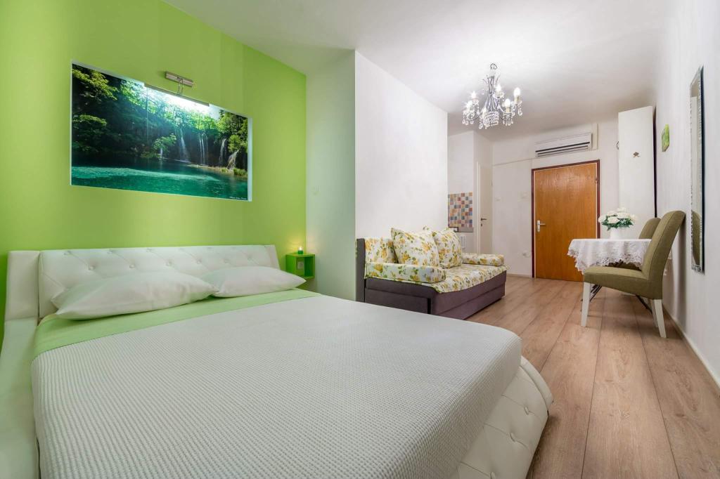 Standardní zařízené studio v centru Korzo. Vše důležité pár kroků (pekárna, lékárna, obchody, pošta, restaurace, nábřeží). Pláž 15 minut chůze nebo 4 autobusové zastávky (5 minut)