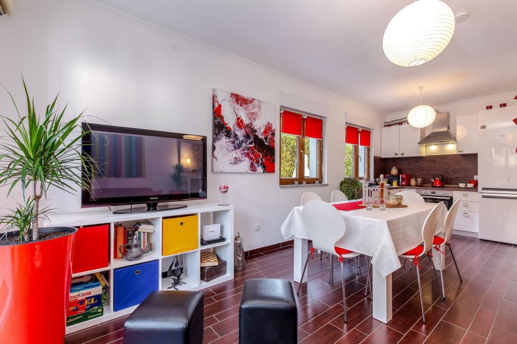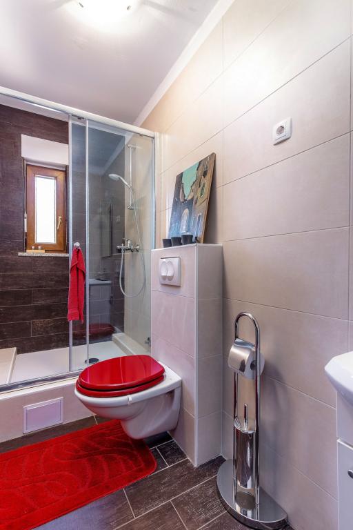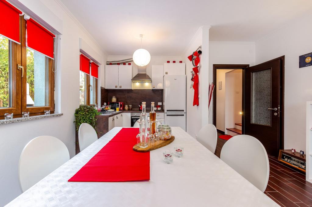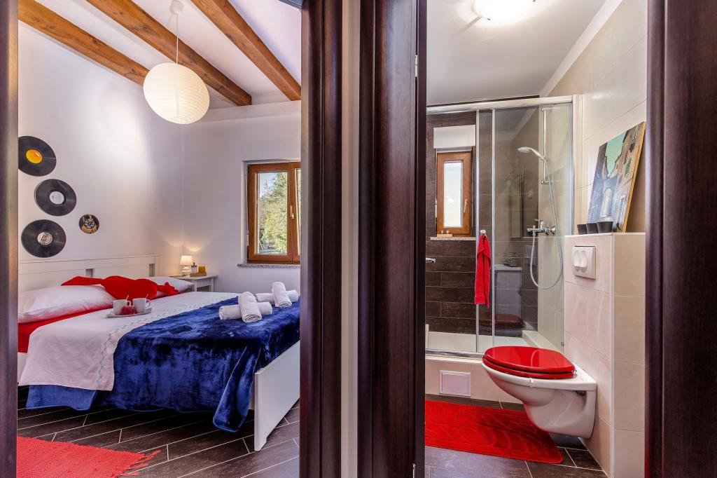 Byt je vybaven vším, co byste mohli potřebovat pro vaši příjemnou dovolenou. K dispozici je obývací pokoj s kabelovou TV s plochou obrazovkou, PS2 s hrami, jídelna a kuchyň vybavená novými a moderními spotřebiči, hrnce, nádobí a příbory, pokud si chcete připravit vlastní jídlo. K dispozici je také koupelna s prostornou sprchou a spíž s pračkou. Pokud si chcete užít čerstvý vzduch v okolí lesa, vše, co musíte udělat, je vyjít ven na balkon a relaxovat svou mysl a tělo na zahradním nábytku nebo ve dvoře s grilem. V prvním patře je hlavní ložnice s manželskou postelí velikosti Queen, skříň a soukromý balkon se zahradním nábytkem. K dispozici je také ložnice s plným lůžkem a další koupelna se sprchovým koutem. V bytě je zahrnuto použití Wi-Fi, klimatizace na obou podlažích, podlahové vytápění a soukromé parkování.