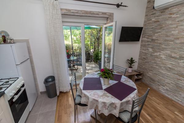 Nově zařízený apartmán se nachází v klidné části Rijeky, pouhých 10 minut od centra města a města Opatija. Byt má vlastní vchod, parkoviště, nádvoří, terasu a venkovní gril. Nedaleko apartmánu se nachází nejkrásnější pláž Rijeky Ploče a Kantridy, tenisový kurt Marcelův drahý fotbalový stadion Kantrida, sportovní centrum Centar-Zamet. Také v blízkosti bytu je malý obchod a supermarket (2 minuty autem) a nákupní centrum ZTC (6-7 min autem).
