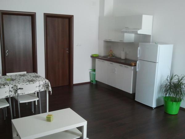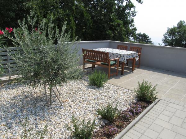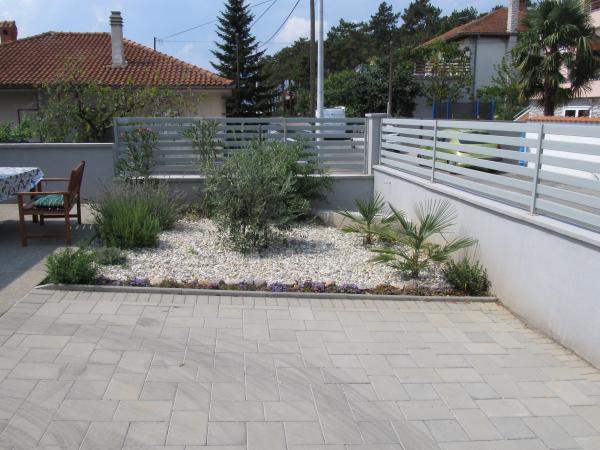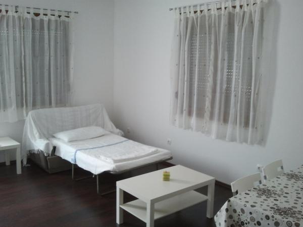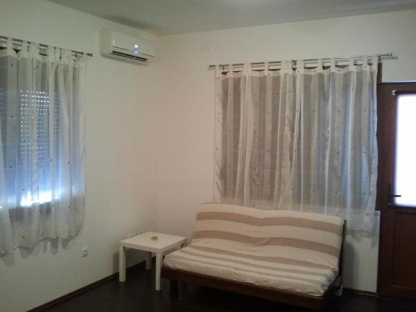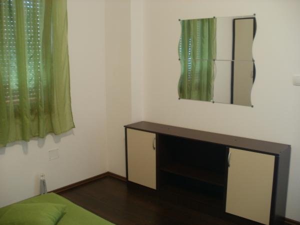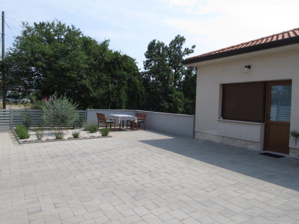 Zbrusu nové apartmány v klidné lokalitě s výhledem na moře a soukromé parkoviště. V blízkosti restaurace, obchody, bankomaty a čerpací stanice. Apartmány jsou umístěny v přízemí se samostatným vchodem. Skládají se z ložnice s manželskou postelí, koupelna a velký obývací prostor s kuchyní, jídelnou a obývacím pokojem. V obývacím pokoji je možnost přistýlky pro dvě osoby. Apartmány jsou během 7-10 minut jízdy od pláže a 5 minut od dálnice.