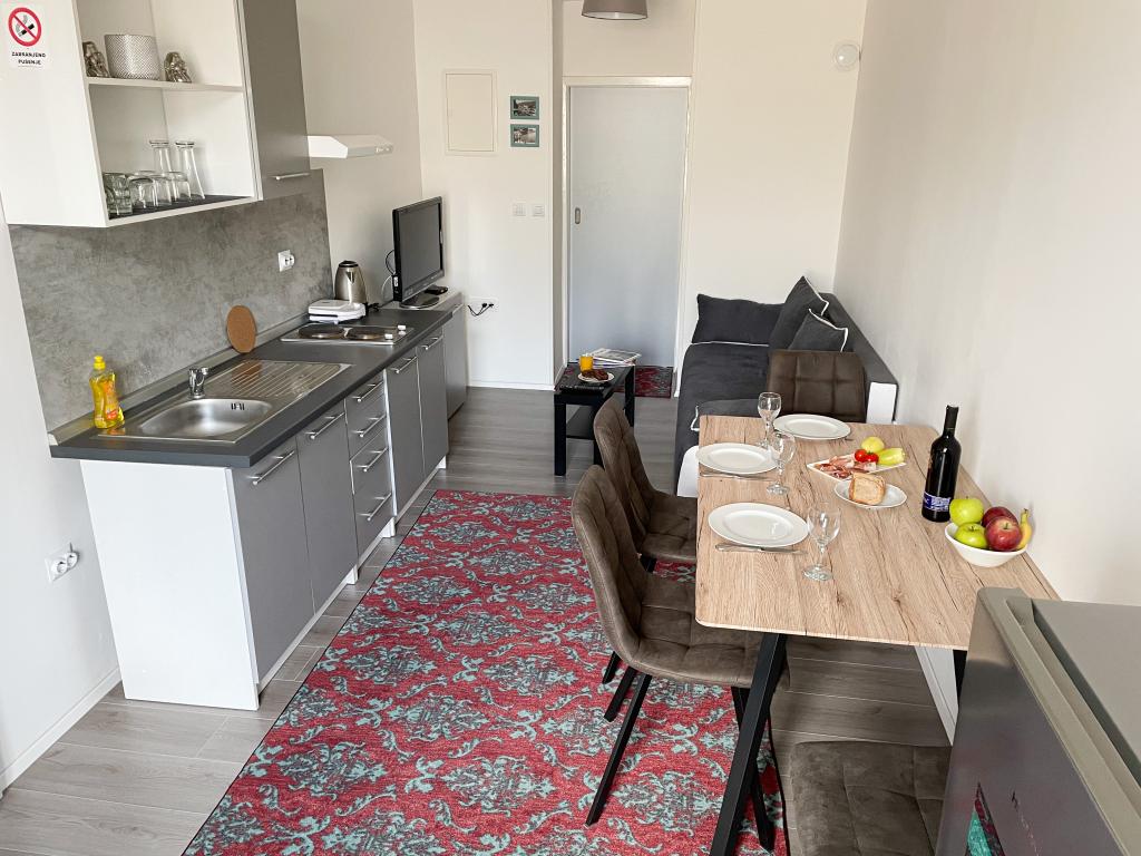 Apartmány Sea Star se nacházejí v blízkosti centra Rijeky. Nově zrekonstruované a plně vybavené nabízejí vše, co potřebujete pro příjemný pobyt (pro stěhování i delší pobyty). Apartmán Sea Star 1 se skládá z kuchyně (sporák, mikrovlnná trouba, lednice, rychlovarná konvice, nádobí a příbory), ložnice/obývacího pokoje (postel 140x200cm, SAT TV, WIFI, ložní prádlo a ručníky, rozkládací pohovka 140x200cm) a koupelny (pračka , vysoušeč vlasů). V apartmánu se mohou ubytovat 2 osoby (ideální pro páry). V přední části bytu je balkon s posezením. Apartmán Sea Star 2 se skládá z kuchyně / obývacího pokoje (sporák, lednice, varná konvice, nádobí a příbory, SAT TV, WIFI - pohovka = přistýlka 140x200cm), ložnice (postel 140x200cm a postel 90x200cm, ložní prádlo a ručníky) a koupelny ( pračka, vysoušeč vlasů), Balkon s posezením je společný pro oba apartmány. Před budovou je veřejné parkoviště.