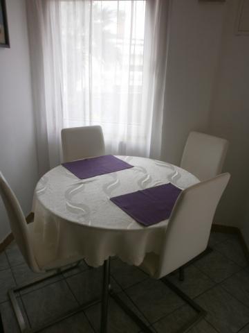 Byt je v rodinném domě se samostatným vchodem, terasa s výhledem na moře, garáž. Interiér je vybaven 2 dvoulůžkových pokojích s možností využití dvou přistýlek v obývacím pokoji (úhel gauč). Plně vybavená kuchyně (trouba, lednička, kávovar), obývací pokoj (stereo, rádio, TVSAT / DVD), koupelna (pračka, vířivá vana). V bytě je klimatizované a možnost využití bezdrátového internetu.