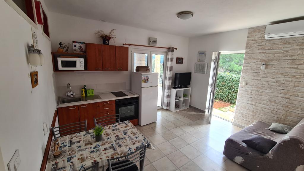 Po několika pokusech jsme nakonec strávili léto na Šoltě v Rogači s mimořádně milými hostiteli. Samá slova chvály pro všechny. Byli jsme v bytě A4. Krásná velká terasa s výhledem na záliv a trajektový přístav. Houpačka na terase je top. Byt je bohatě zařízený a máte vše, co potřebujete. Celá zahrada a další byty jsou nádherné. Moře je vzdáleno 150 m, městská pláž 500 m, krásná zátoka Kašjun 10 minut chůze. Na cestě do Kasjunu je několik malých zátok a mola, kde je možné koupání. Pro ty, kteří hledají klidnou dovolenou, ideální. P.S. Pokud si rádi dáte sklenku skvělého červeného vína, kontaktujte hostitele