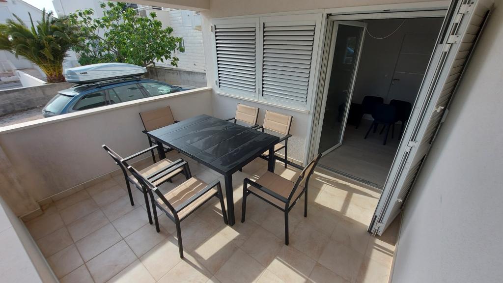 Kompletní a moderní, nově vybavený apartmán v klidné oblasti, určený pro ty, kteří chtějí rodinnou dovolenou. Objekt se nachází asi 20 metrů od moře a pláže. Má přímý vstup na pláž Šepurine, která má veškeré doprovodné zázemí (kavárny, rychlé občerstvení, půjčovna lehátek, SUP, šlapadel, dětské hřiště, aquapark...). Byt se skládá ze dvou ložnic (jedna s manželskou postelí 180 cm a druhá se dvěma samostatnými lůžky), obývacího pokoje (rozkládací sedačka + smart TV), kuchyně (myčka, trouba, lednice s mrazákem, sporák s digestoří, mikrovlnka), jídelna (stůl + 6 židlí), koupelna (umyvadlo, WC, sprchový kout, pračka), samostatné WC a terasa (stůl + 6 židlí). Byt je klimatizovaný, má WiFi internet a hlídané parkoviště. Mimořádná výhoda pro důchodce - u vchodu do bytu není jediný schod (rampa pro kočárky zvenku). Sprcha je na úrovni podlahy, všechna lůžka jsou vysoká (pohodlné použití) a pláž má rampu pro snadný přístup do moře!
