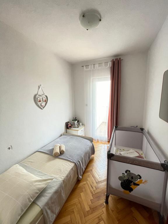 Byt se nachází v klidné části města, 5 minut chůze na pláž, 15 minut chůze do centra a veškeré občanské vybavenosti. K bytu náleží také parkovací stání.