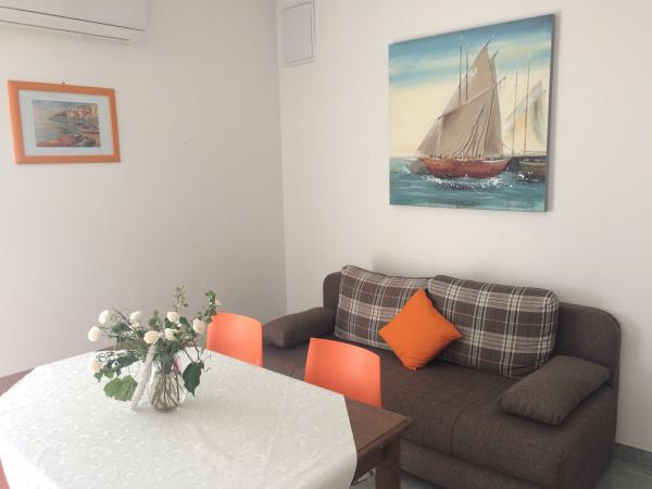 Já, moje žena a dítě jsou v A2 + 2, apartmán je moderní, pohodlné, čisté a má vše, co potřebujete. Moře je v přední části domu s krásnou pláží. Dům je vhodný především pro dětské, protože tam není žádný strach z dopravy, má velkou zahradní terasu, kde hrát. Byli jsme na konci sezóny, takže was`t přeplněné a počasí bylo slunečné. Rozšiřujeme dva dny navíc. Hostitelé byli velmi přátelští. Byl jsem především dojem Marina Frapa s velmi pěkným jachty. Těšíme se na příchod příští rok.