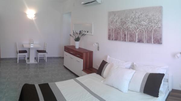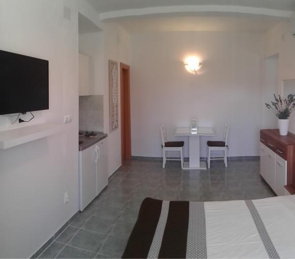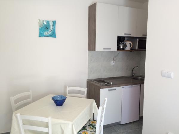 Ubytování bylo naprosto v pořádku, účelné, čisté, nový nábytek, klima. Paní domácí velmi příjemná a solidní. Nejlepší ovšem bylo koupání. Moře ihned před apartmánem, podél pobřeží korzo a betonová plata s mnohem lepším přístupem do vody, než na pláži. Ale i ta je v dosahu (cca 5 minut okolo malé zátoky). Malý obchůdek také cca do 5 min. chůze. Byli jsme velmi spokojeni.