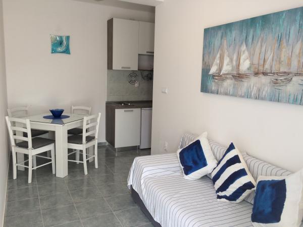 Velmi pěkné, jednoduché a čisté ubytování, Cena přijatelná na období začátek června. Po ruce gril s terasou, nedaleko pěkná procházka do města Rogoznica iz důvodu nákupu nakolik v blízkosti AP není obchod ale každé ráno chodí auto s chlebem a základními potravinami no většinou jsme ještě spali. Restaurace s barem v blízkosti. Čistá voda a příjemné pláže v blízkosti. Určitě bych doporučil i celé rodině nakolik v objektu jsou i další 2 AP. Děkujeme, Norbert