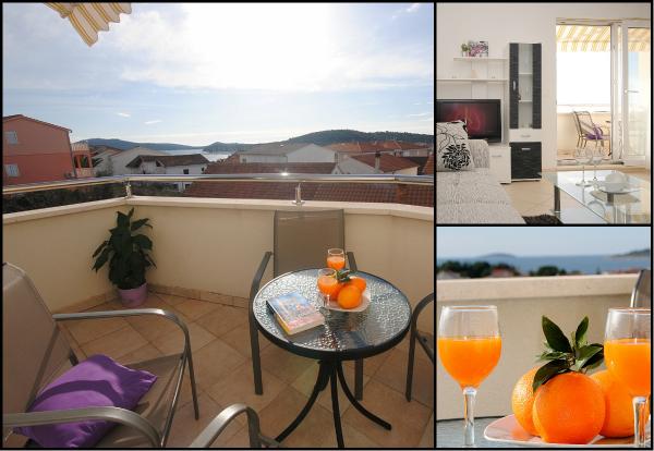Plně vybavené a nově zařízený byt s výhledem na moře a ostrovy, se nachází 5 minut chůze od centra města a 5-10 minut chůze od krásné pláže a Marina Frapa. Obchody, restaurace, bankomaty a další zařízení se nachází 5-10 minut chůze.