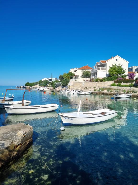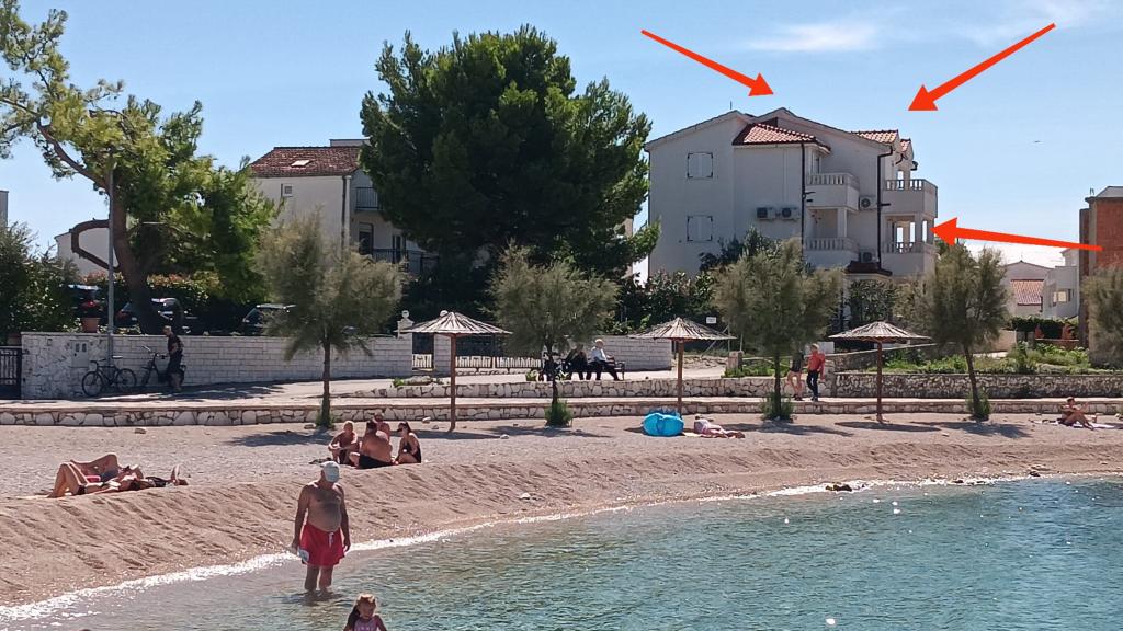 Apartmány se nacházejí v rodinném domě přímo na pláži a všechny mají terasu s výhledem na moře. Každý apartmán má klimatizaci, internet, TV, kuchyň a koupelnu. Před domem je gril a místo pro socializaci s výhledem na moře. V suterénu máme pračku a sušičku, které mohou hosté využívat za malý poplatek. Naše hospodyně je vám vždy k dispozici.