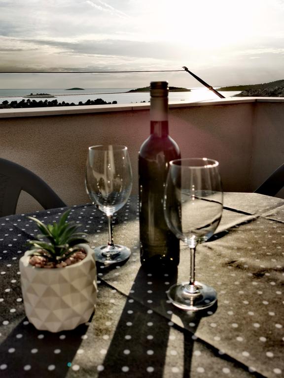 Apartmány Antonio jsou krásně zdobené. Mají krásný výhled na moře a ostrovy.Nacházejí se v soukromém domě ve 2. a 3. patře. Dům se nachází v klidném prostředí. Vzdálenost od moře je 90m stejně jako od centra. Národní park Krka je vzdálený 40 km, město Šibenik 35 km a město Split 50 km