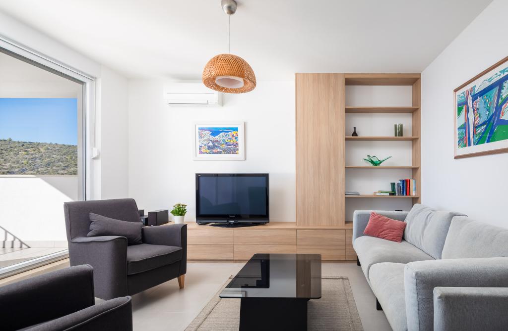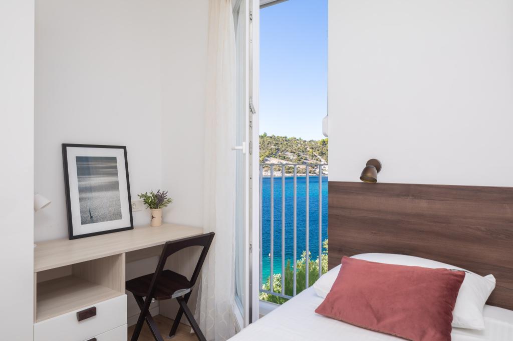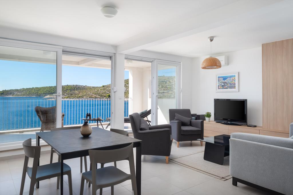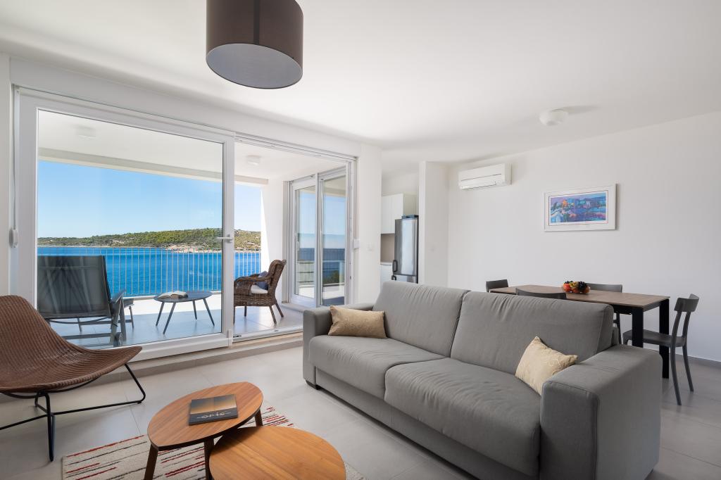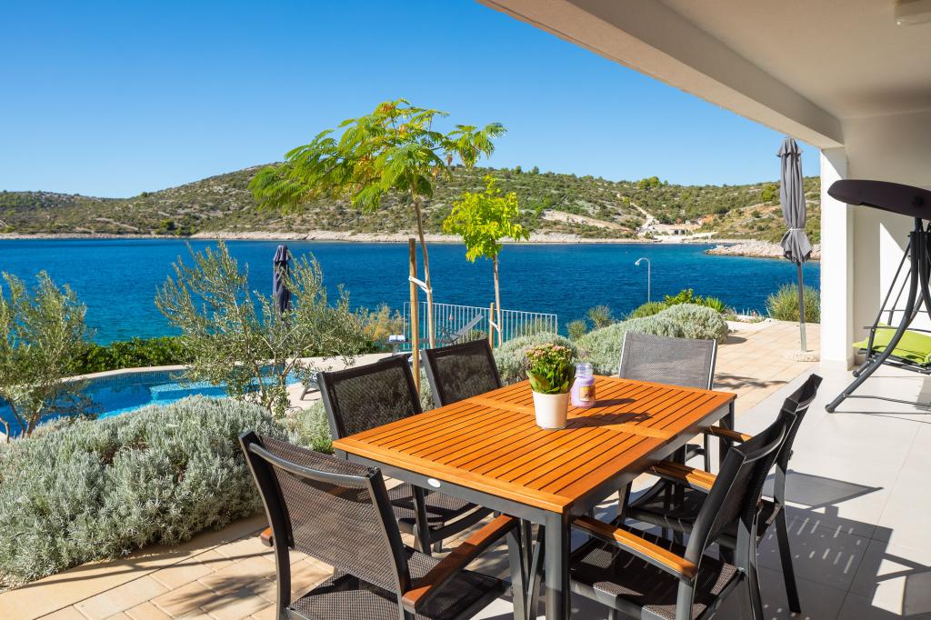 Villa CapeCarol se nachází v samém srdci slunné Dalmácie, v turistickém letovisku Kanica. Tato moderní vila se nachází přímo u pobřeží a nabízí nádherný panoramatický výhled na křišťálově čisté moře a nedotčenou přírodu, která ji obklopuje. Krásná vila CapeCarol s obytnou plochou 310 m2 nabízí svým hostům soukromí pobytu na třech plně vybavených patrech-apartmánech. Exteriér i interiér domu se vyznačují čistým, moderním stylem, který dodává vile přirozenou, příjemnou atmosféru. Každý apartmán o rozloze 95 m2 má velký obývací pokoj a kuchyň, 2 ložnice (1 s manželskou postelí a 1 s oddělenými lůžky) a 2 koupelny. Každý apartmán má velkou terasu s krásným výhledem na moře. Výhradní užívání bazénu (15 m2) a předzahrádky/terasy je možné s pronájmem apartmánu SeaCarol v přízemí. Vila má celkem 3 privátní parkovací místa, 1 místo pro každý apartmán. Kotvení pro menší loď je možné.