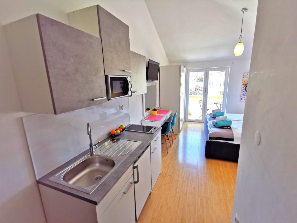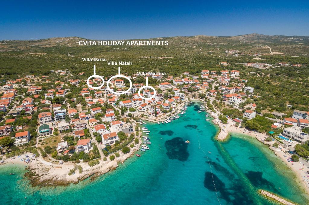 Vážení hosté, pokud hledáte příjemnou a odpočinkovou dovolenou vysoké kategorie v přátelském prostředí, jste na správném místě! V našem rodinném resortu, který se rozkládá na cca 5000 m2, Vám nabízíme devět exkluzivních apartmánů umístěných ve třech vilách, Villa MARTINA (30 m od moře), Villa NATALI (100 m od moře) a Villa DARIA (150 m od moře). moře)). Součástí našeho resortu je prostorný dvůr s dětským hřištěm, sportovním hřištěm a soukromým bazénem se sluneční terasou, který mohou využívat výhradně naši hosté. Naši rodinní příslušníci vám budou k službám po celou dobu vašeho pobytu a budou se snažit vyhovět všem vašim potřebám a zpříjemnit vaši dovolenou co nejvíce. Vítejte v CVITA Holiday Apartments!