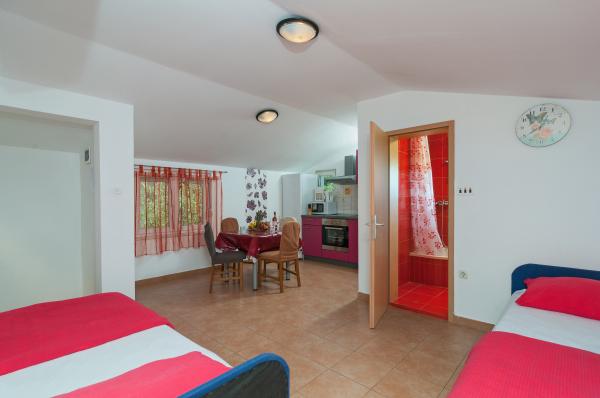 Pokoje čisté, vchod byl samostatně, klimatizace fungovala, pláž Miline na pár kroků, všechno bylo jak má být. Pobyt nám znepříjemnily jen komáry a cvrčci, které "šli" nonstop. Ale cvrčci hráli v celé Rogoznici.