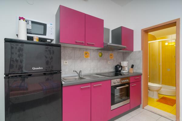 Skvělá lokalita, skvělí majitelé, bez poskvrny čisté byty, plně vybavený kuchyňský kout, přístup k jízdním kolům, skvělé místo !!! Doporučuji!