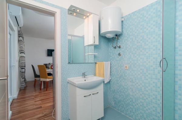 Názor na pobyt v apartmánech A1 a B1 v roce 2021. Velmi milí a ochotní majitelé. Nevadí jim zvířata. Dobře vybavené apartmány. Funkční kuchyňský kout, lednička, klimatizace, TV. Dostatečně zařízené, aby věci zůstaly v kufrech. Apartmány jsou umístěny tak, aby se hosté navzájem nerušili. Každý byt má místo k odpočinku venku. Existují stromy, které dávají stín. Bezpečné místo pro rodiny s malými dětmi. Pláže, obchody, rybí trh, restaurace, bankomaty, směnárna, zmrzlina jsou velmi blízko. Okolí lze prozkoumat na kolech, která jsou hostům k dispozici. Je to tak, jak ukazují obrázky. Rogoznica je nádherné místo.